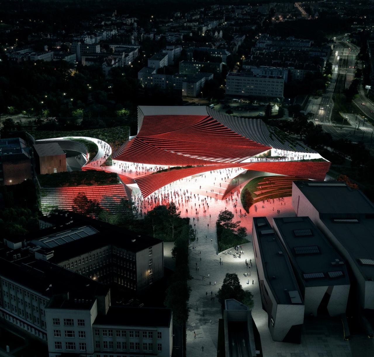 参与竞赛的项目团队成员包括来自隈研吾建筑事务所的隈研吾(创始合伙人)、Marcin Sapeta(合伙人)、Zachary D. Reichert、Sebastiano Caruso、Marcel Dawid、Ong Yong Siang、Jiang Xianfeng、Jagoda Joanna Krawczyk(KAE)和 Alicja Kubicka(KAE) & Associates,以及来自 Ingarden & Ewy Architekci (IEA) 的 Krzysztof Ingarden(负责人)、Piotr Urbanowicz、Adrian Kasperski、Karolina Midro 和 Katarzyna Pikiewicz-Derus。景观顾问由 MASU 担任,其团队包括Sune Oslev和Gauthier Durey。声学顾问由为来自Pracownia Akustyczna Kozłowski 的Piotr Kozlowski 和 Bartosz Zawieja。机电顾问则由ARUP 波兰公司负责。