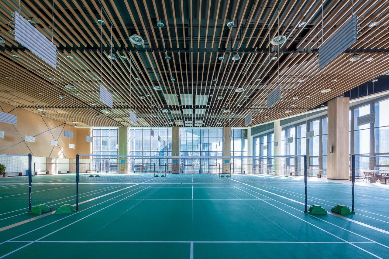 设计团队采取大体量建筑地景化+高架跑步道策略,将景观和建筑融合串联起来,实现低覆盖率下的体育综合体设计。