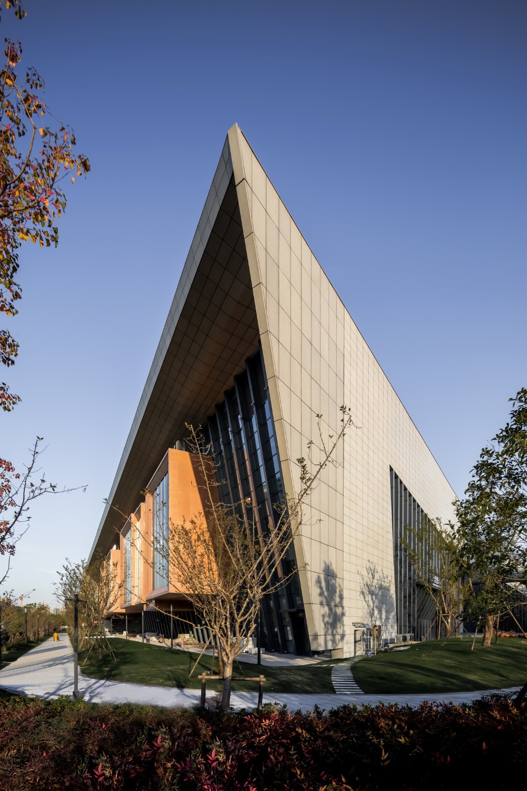 项目规划建设总用地面积57647㎡,为了保留足够的公园绿地及部分室外运动场地,设计建筑密度仅15%。如何在不足9000㎡的建筑占地里打造集文化中心及体育活动中心为一体的高标准现代体育综合体建筑成为本案设计的主要切入点和设计核心。