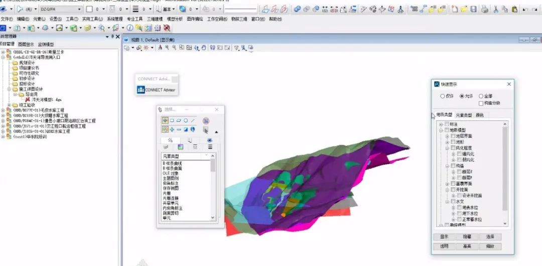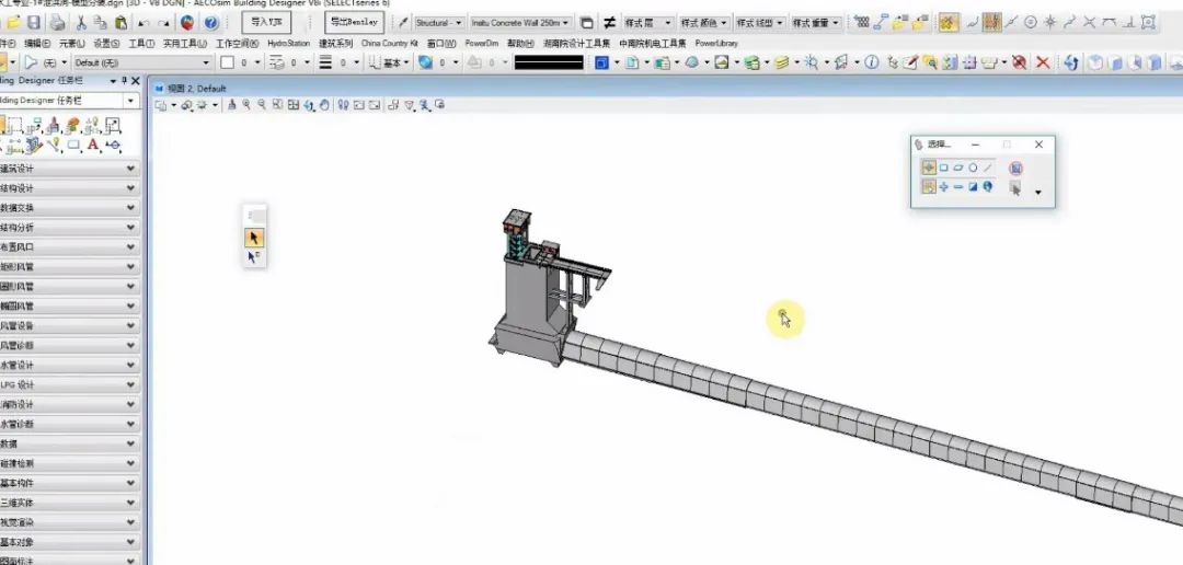 元件库建设与管理,基于Microstation开发了湖南院水利水电工程三维元器件库管理工具软件,构建了涵盖水工、施工、水机、电气、消防、金结等专业的三维元件库管理平台。该平台适用于Bentley平台下的所有专业软件,可为用户提供元件添加、搜索、信息查询、调用等功能,该管理工具基本涵盖水利水电工程所有专业的常用元件,大大提高了设计人员的工作效率和元件模型的标准化。