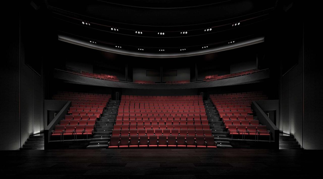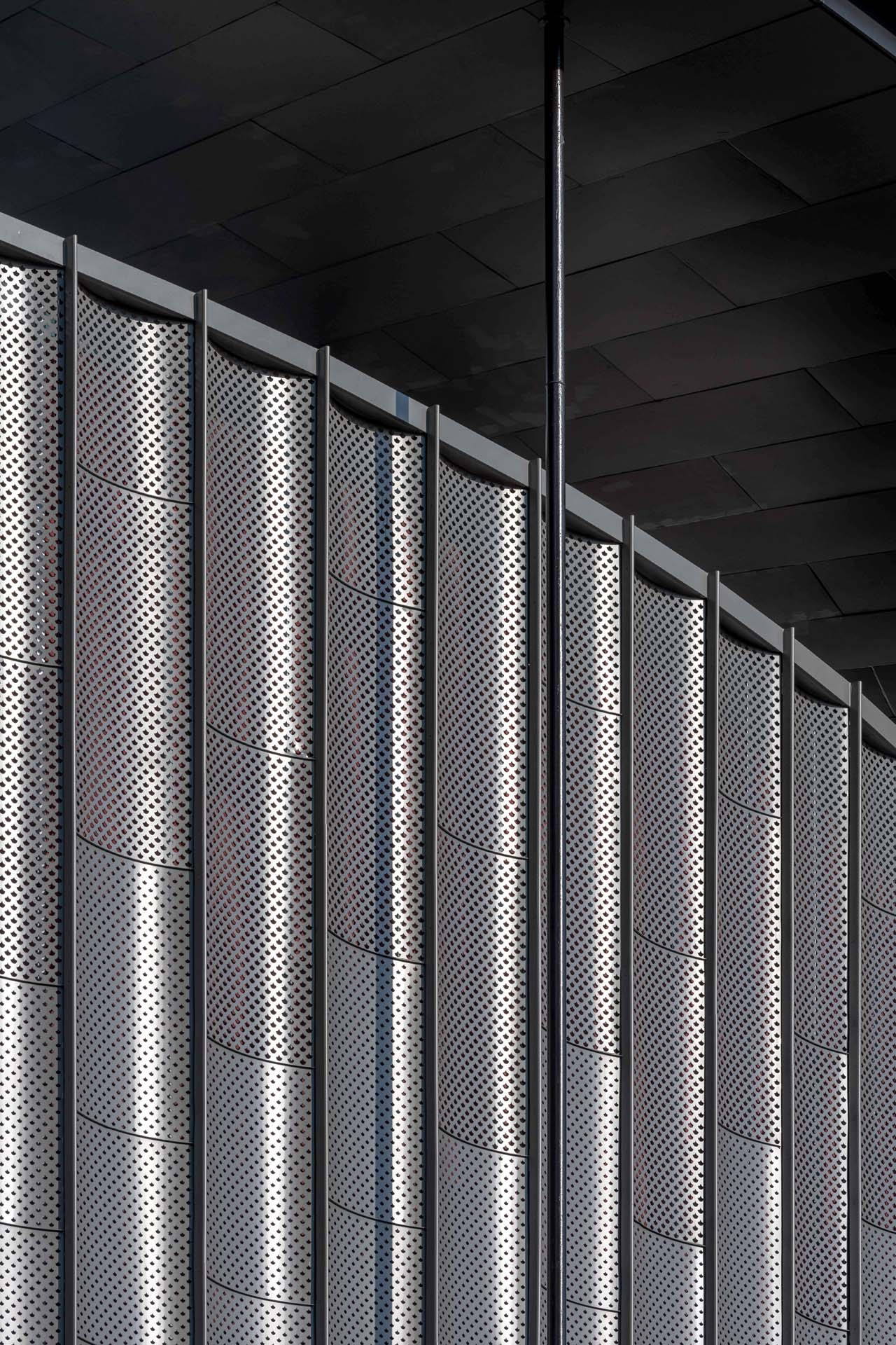 13米高的公共敞廊,作为组织剧场进入的必要流线,也是城市空间的延伸:敞廊与两侧大台阶贯通,连接至广场,在城市中塑造出立体的环形公共流线,也让建筑在与城市公共资源的整合中,放大了自身的价值。