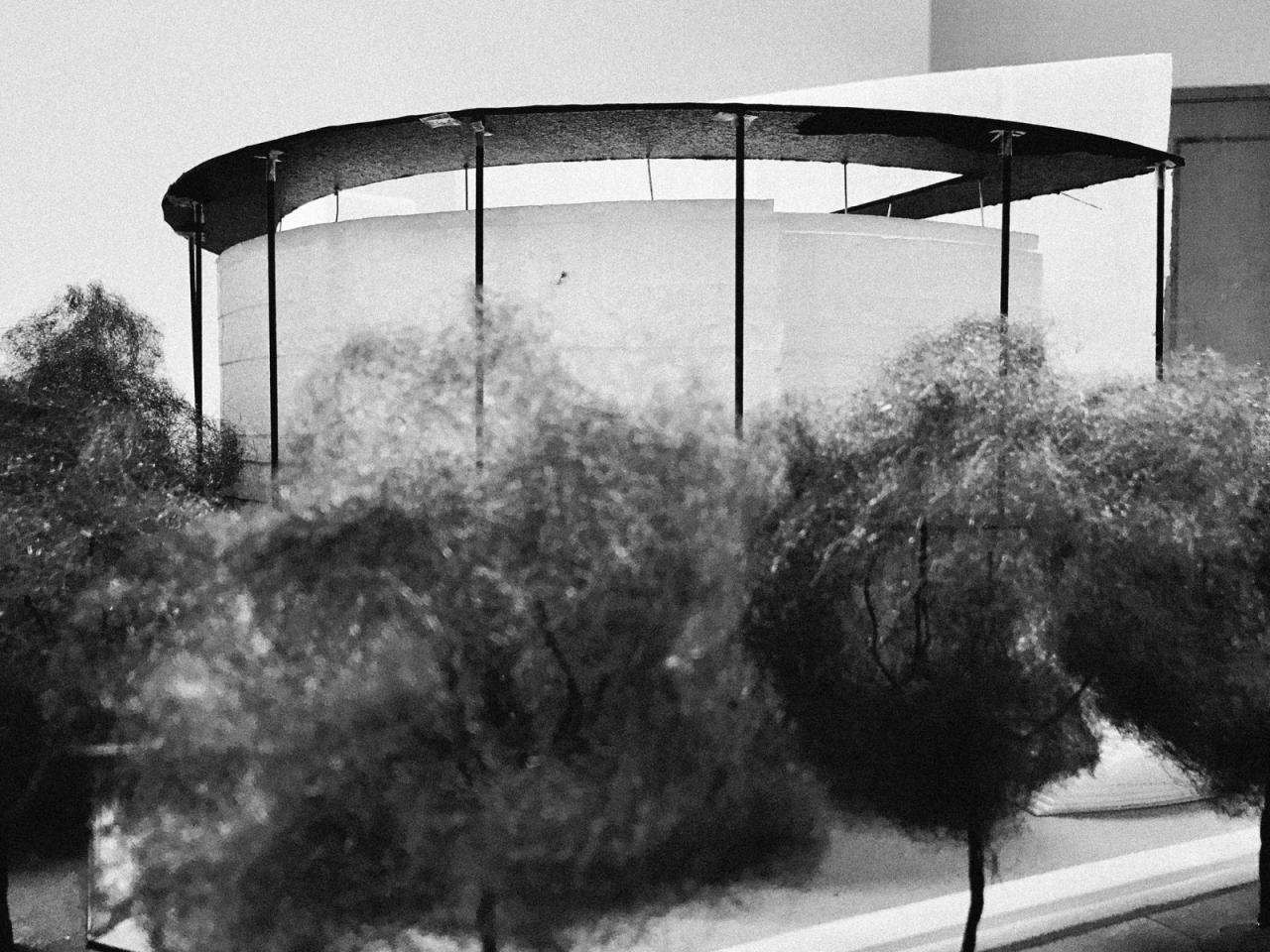 改造的动作从剖面开始,原本最低点仅4m净高的看台空间,已无法满足一座当代剧场对声光电的专业需求。我们将城市界面刻画为13米高的城市敞廊,在广场和建筑之间,建立起一组舞台与看台般的,城市空间的观演关系,也在树木掩映的景观中,刻画着建筑与“自然”的关联。