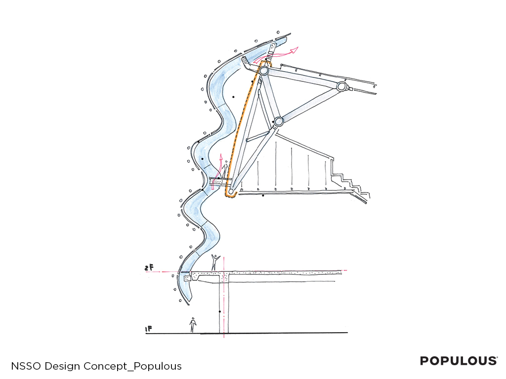 “冰丝带”国家速滑馆(NSSO)联合项目总监及Populous高级负责人Andrew James表示,“被邀请作为奥利匹克体育场馆的首席设计师对我们来说是一份巨大的荣誉。‘冰丝带’的获奖设计的创作用时很紧张,我们通过对几个概念的思考和多次深化,最终将‘螺旋’概念实现,并打造出场馆现在的模样。我们在北京、布里斯班、印度、伦敦和美国的团队吸取我们在意大利都灵的奥运会速滑场馆‘奥沃尔-林格托体育馆(Oval Lingotto)’的经验,并以我们为2014年俄罗斯索契冬奥会所设计的‘菲什特奥林匹克体育场(Fisht Stadium)’为案例,最终完成了‘冰丝带’的设计。”