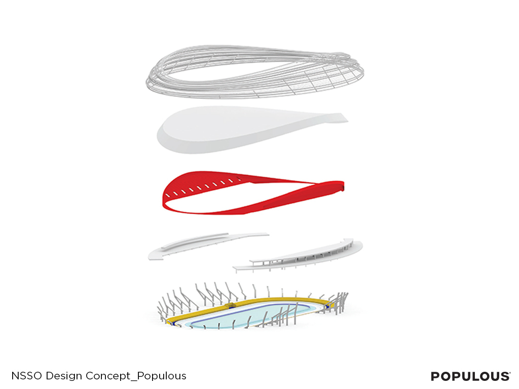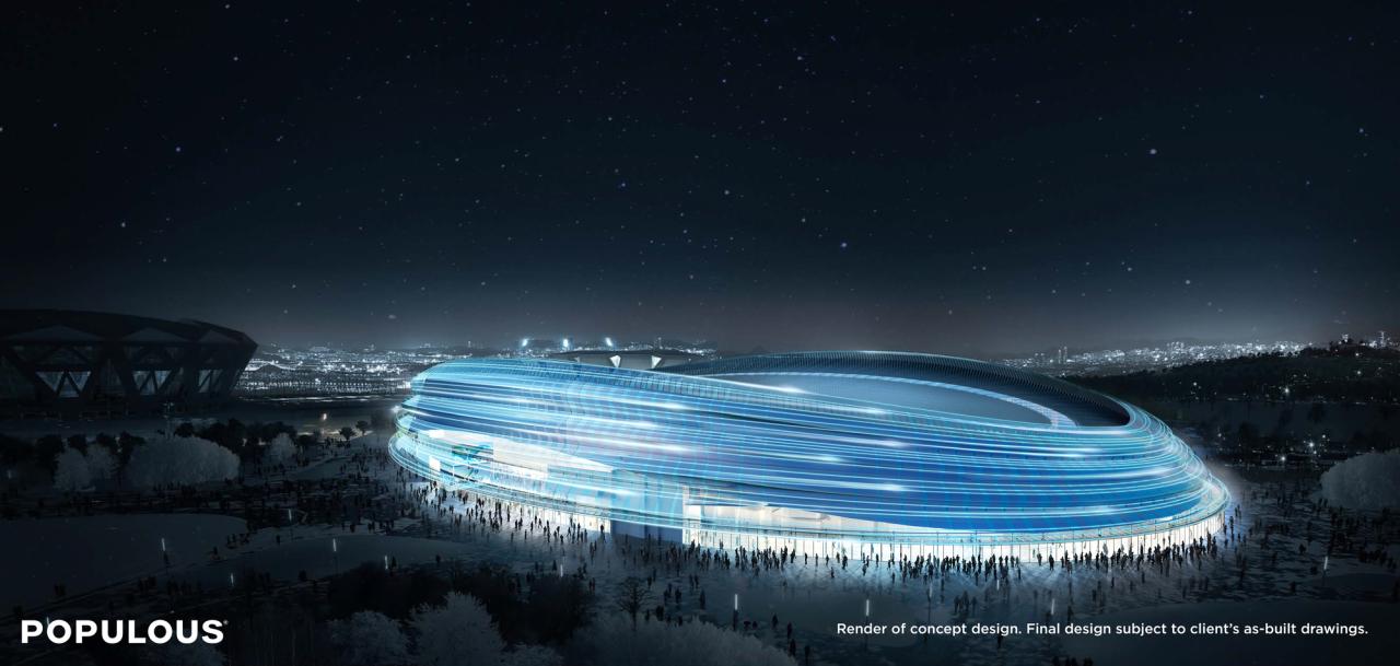 在赢得奥运速滑馆的国际设计竞赛后,国际知名体育建筑设计公司Populous为2022冬奥会设计了“冰丝带”。这一场馆将作为中国文化遗产的象征,颂扬速度滑冰的优雅、精准、疾驰和活力。Populous位于布里斯班的亚太区总部带领事务所位于五个国家的三间办公室,赢得了这个参与者超过60家事务所的国际性设计竞赛。