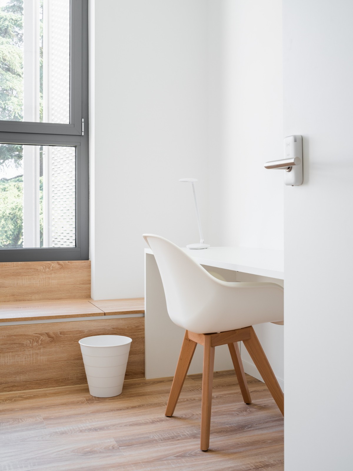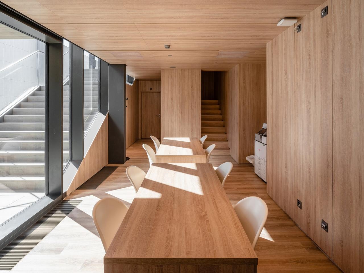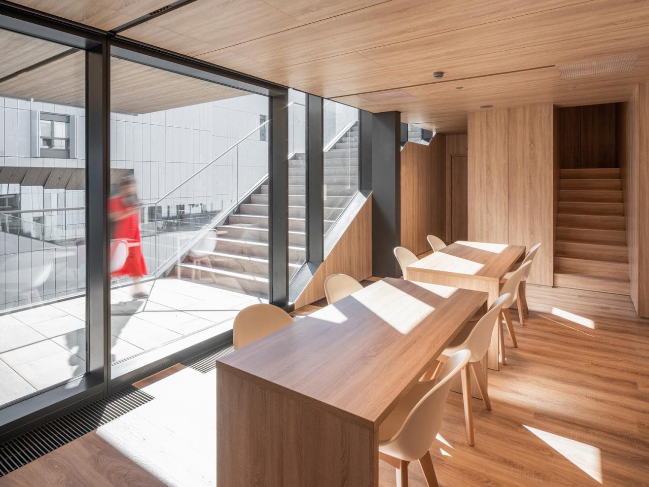 莫里永学生宿舍宜居的公寓空间充满了木色与白色,因此展示着日本建筑设计的风格。此外,每个细节都以可持续设计为目标,从而进一步优化空间体验。例如,窗边的长椅同时也可以作为餐桌、放松心情的沙发、储藏空间和开合窗户及巨大百叶的落脚点使用。