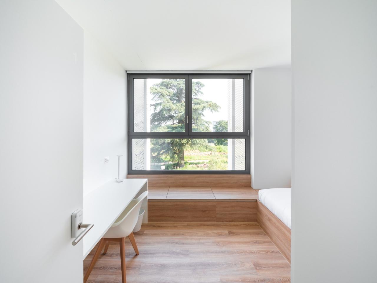此外,“两房三房公寓”单元则是面向家庭、以及愿意分享一个公共起居空间的学生们所设计的类型。所有的公寓设计和布局都是为了尽可能地优化可用空间。同时,各个住宿单元在阳台上都配备了一个临窗长椅,从而成为了内与外之间的联系空间,同时也为住宿者增添了多功能的储物区域。