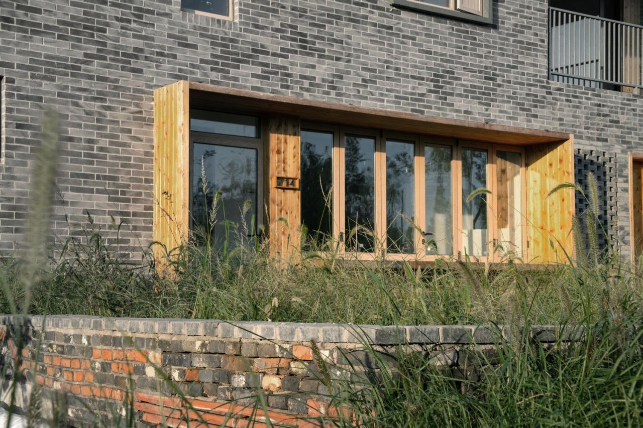 设计团队将现状建筑进行典型分类,并有针对性的研究几种模型样式,包括屋顶做法,披檐样式,结构加固、门窗形式,材料组合等等。同时,造价计算也同步进行,确保了每一种做法、样式都是在单方造价内可实施落地的,最后形成了一套基本的建筑模块。设计团队选拟了几栋示范样板,进行基本模块的组合。因每套民房的尺寸和空间不同,所以即使是采用基本模块组合之后,依然没有完全一样的两套房子,建筑的丰富性和设计施工的可操作性在这个方法下同时得到了满足。同时,基于李窑村自身的文化底蕴和特点,材料上更多的使用青砖元素,受造价和结构限制,青砖与仿青砖柔石贴面结合使用,在立面结构薄弱的地方用仿青砖柔石贴面代替真实青砖,既满足效果又不为结构带来更多负担。彰显李窑村的窑文化特征,不落于常规做江南村落就是整村粉墙黛瓦的套路,真正做到一村一特色。
