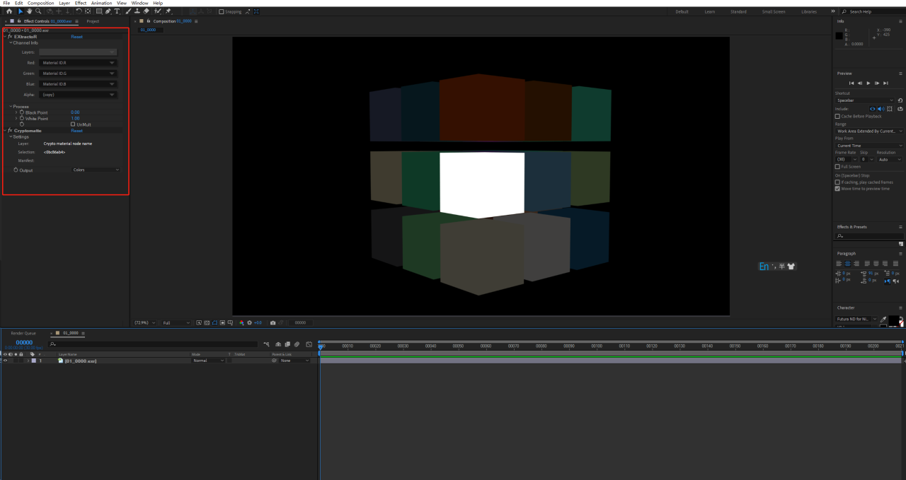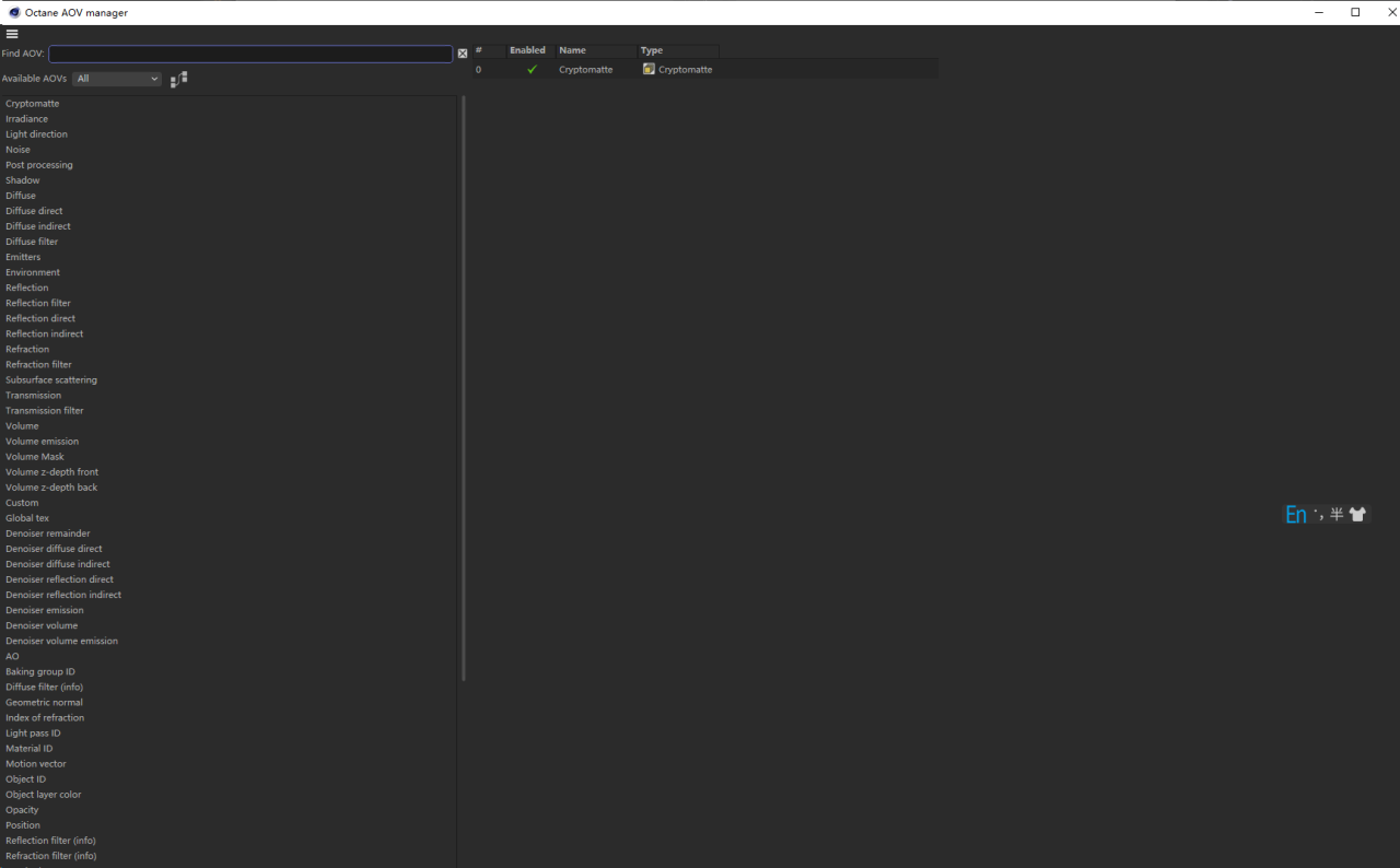 1.选择octane渲染器,通道中选择材质ID(cryptomatte)