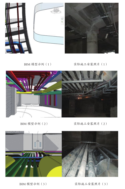 图2 BIM模型示例及实际施工安装照片
