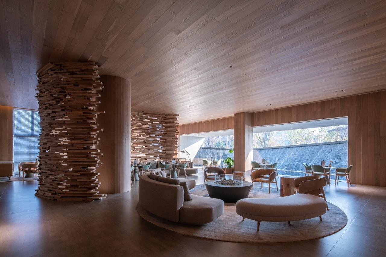 为了贴合周边客群的物理需求和情感需求,设计团队从开始便思考如何为花山提供一个亲近自然、艺术与品质感并存的公共空间。设计淡化了建筑和景观的空间边界,使建筑融于自然的生长,把艺术引入生活,实现艺术的大众化。