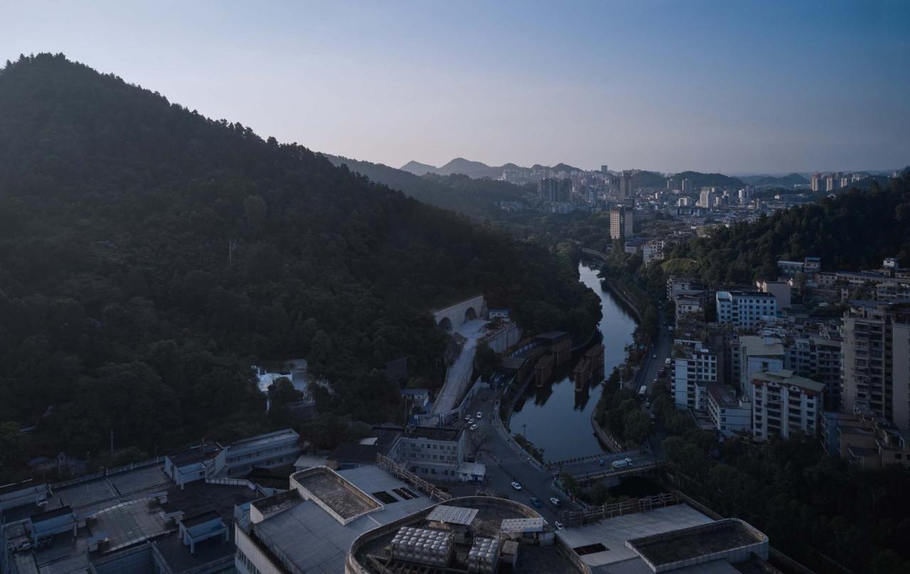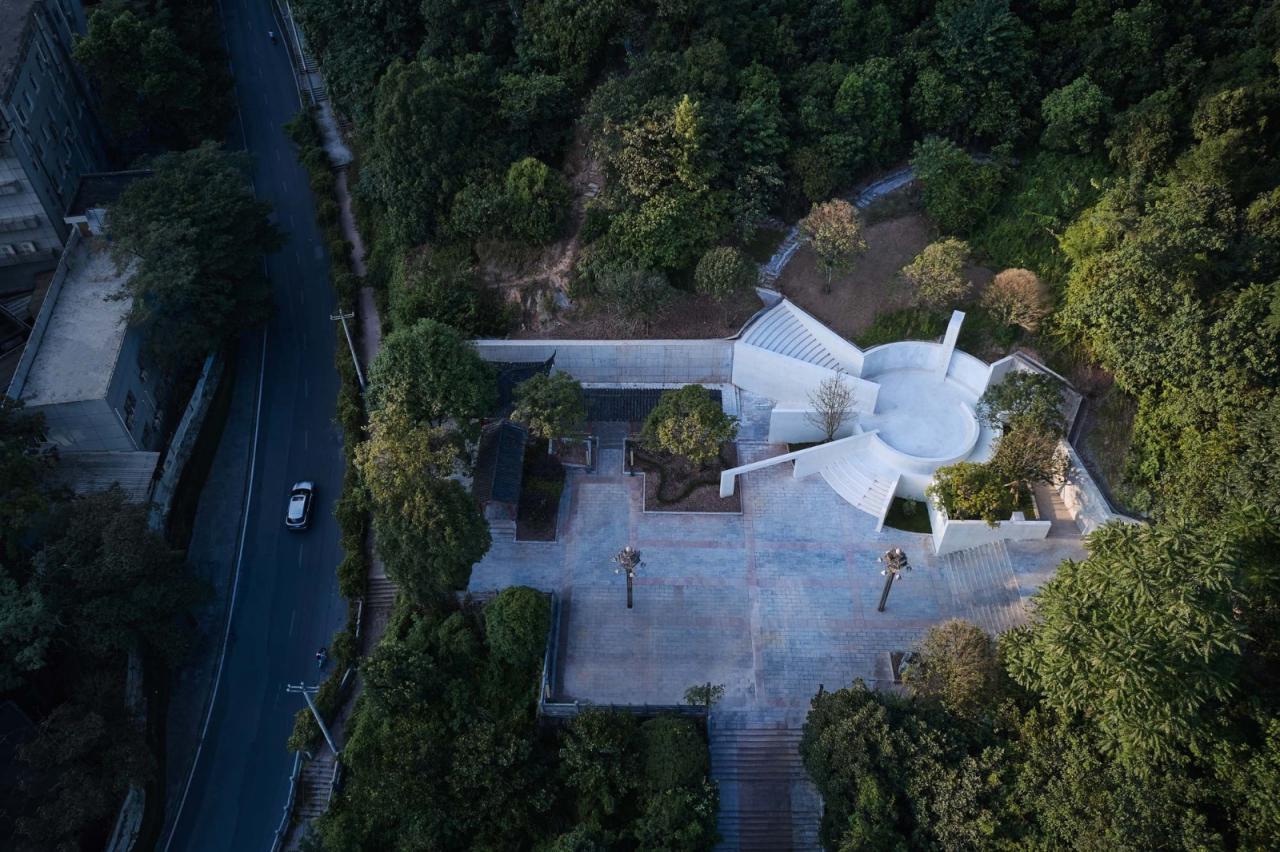 项目选址在凤凰山半山腰西南角的一处市民休闲健身广场。基地毗邻凤凰山隧道入口,靠近山脚,与市内交通衔接便利,市民可从山脚沿台阶步行直达参观。项目尊重原有场地及其自然环境肌理,仅拆除部分健身器材,并充分保留了广场的休息凉亭等设施及其原有的基础布局,以最大化适应性介入周边环境;同时使得新建筑尽可能呈现质朴和低调的姿态,与当地的自然风貌以及当代社会人文精神保持谦逊而开放的互动。