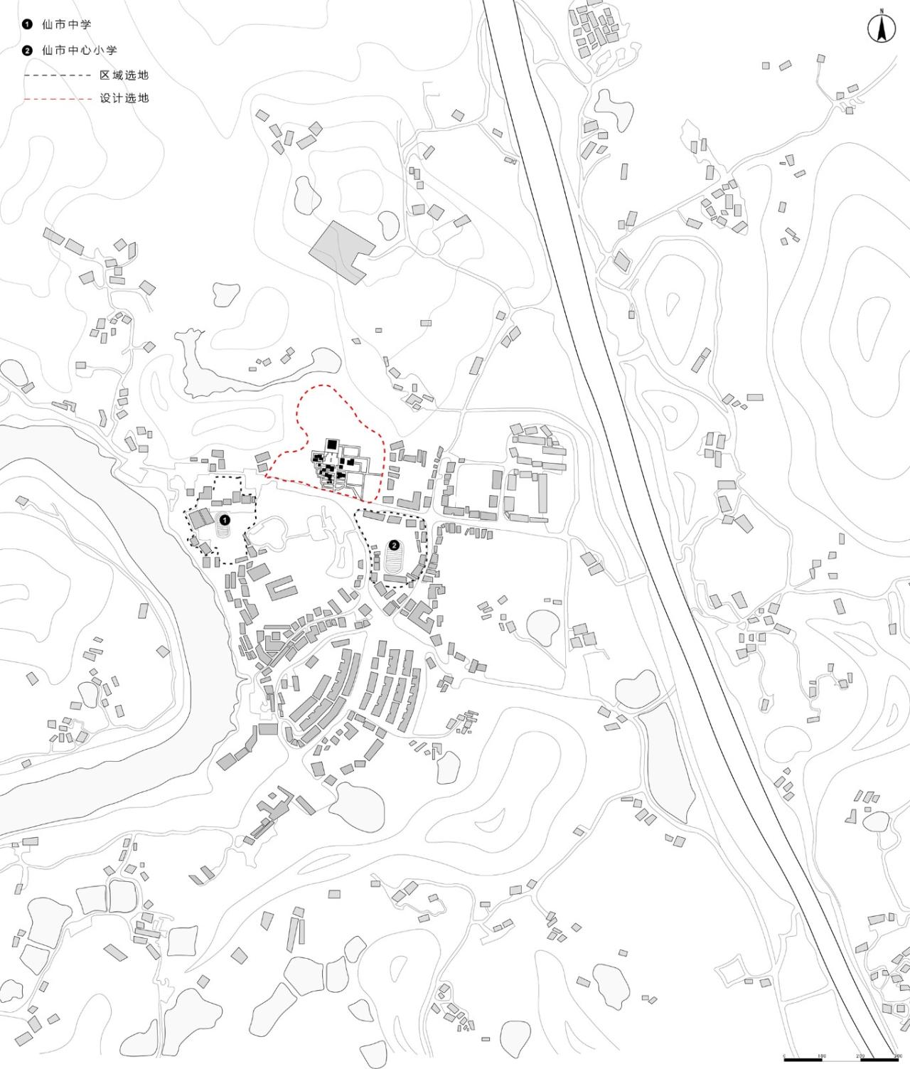 场地位于自贡市东南十一公里处的釜溪河畔,总占地面积约为30000㎡,其中建筑面积约为15000㎡,北部群山环绕,植被丰富,南部与村民活动公园、小学、中学隔路相邻,是村落的活动、教育和聚集中心。