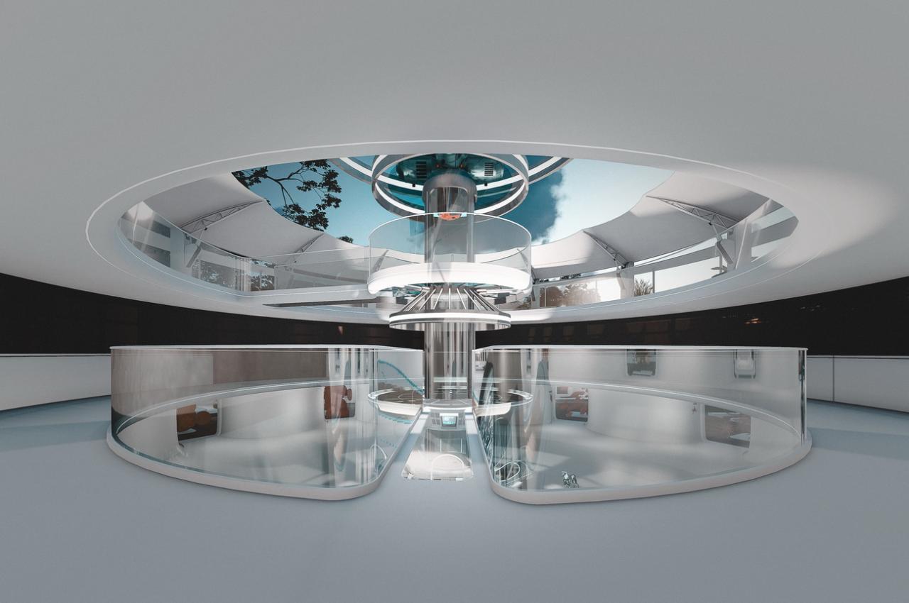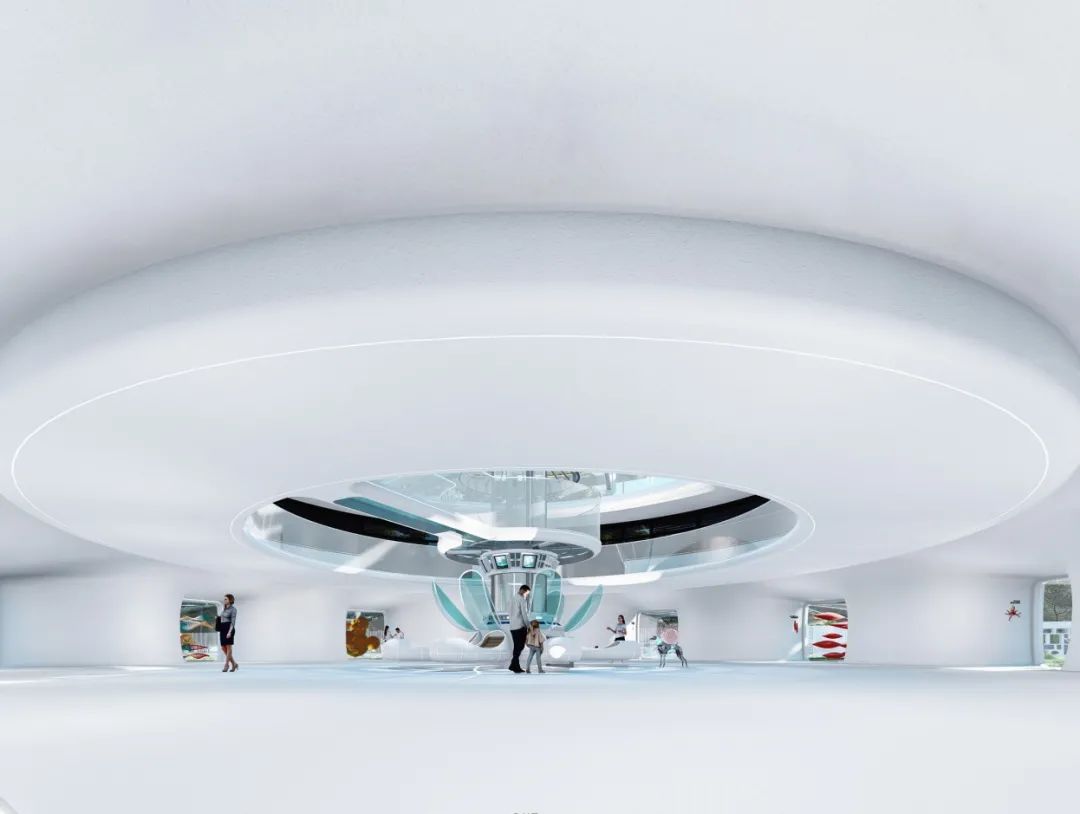 同时,它也如同一艘随时起飞的宇宙飞船,寓意承载着孩子们的梦想飞向宇宙中探寻,花瓣亦或飞船伸出的11个玻璃盒子,每一个都放置有人体的基因细胞,象征着生命本源。