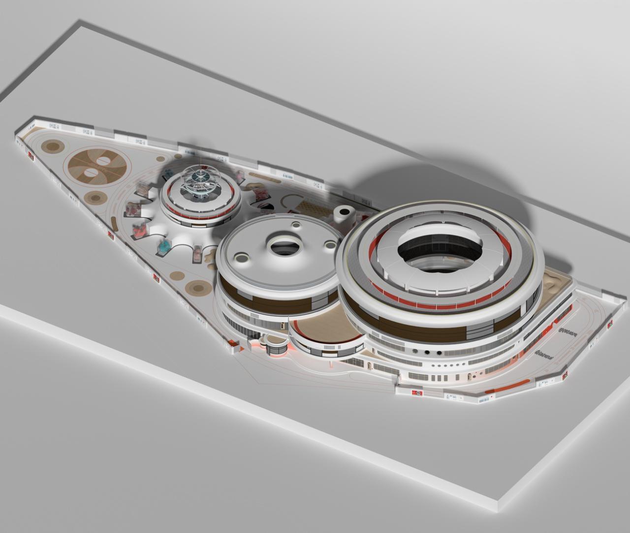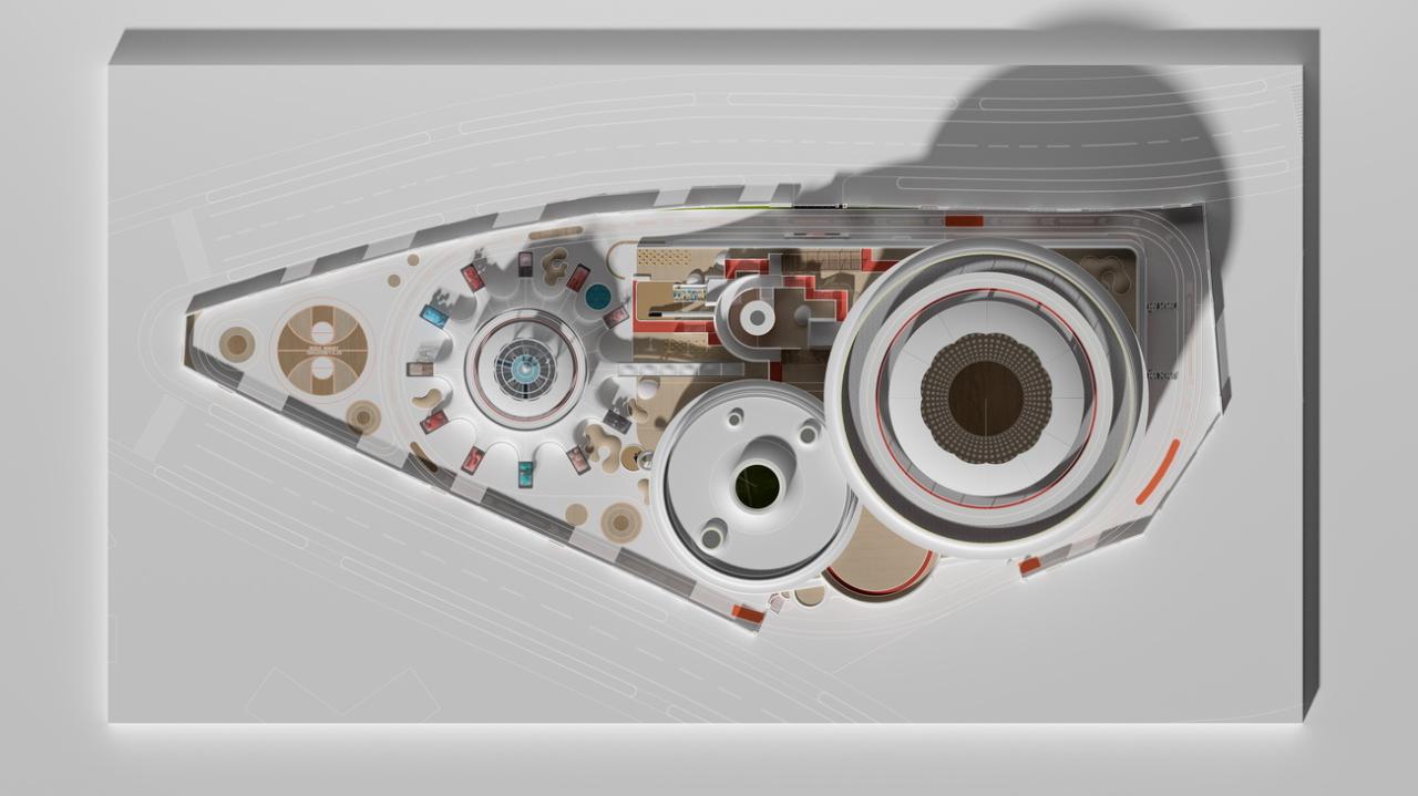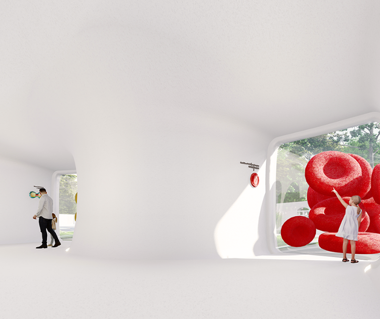 设计之初,DIKA一直在思考,究竟什么样的方案,才是适合这个场地的?从自然观、宇宙观与教育理念出发,将教学主体设置成三个相对独立的整体,小到人体基因细胞,大到外太空与航天梦,希望儿童游走其中,以沉浸式的使用与感受,达到见微知著的效果。