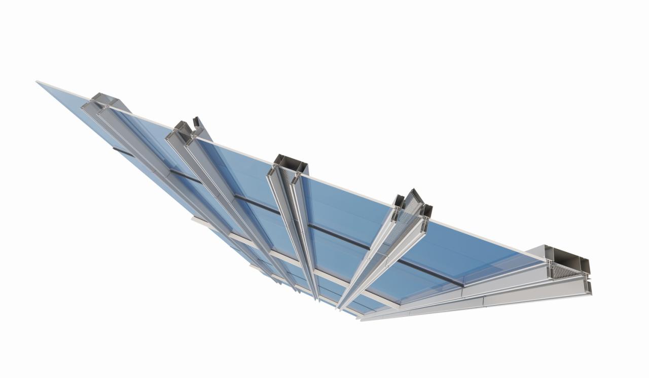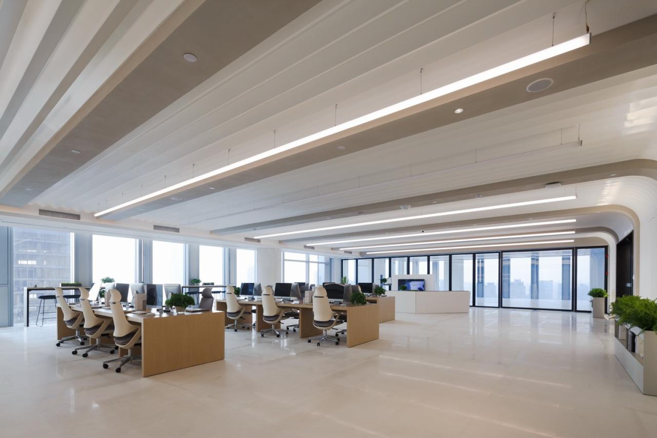 幕墙创造性地采用整层高的玻璃划分,竖向网格状的明框玻璃,有效减少西侧太阳的直射影响,显著降低高层建筑能耗,室内视野开阔,纯净通透,营造更高品质的室内办公空间。
