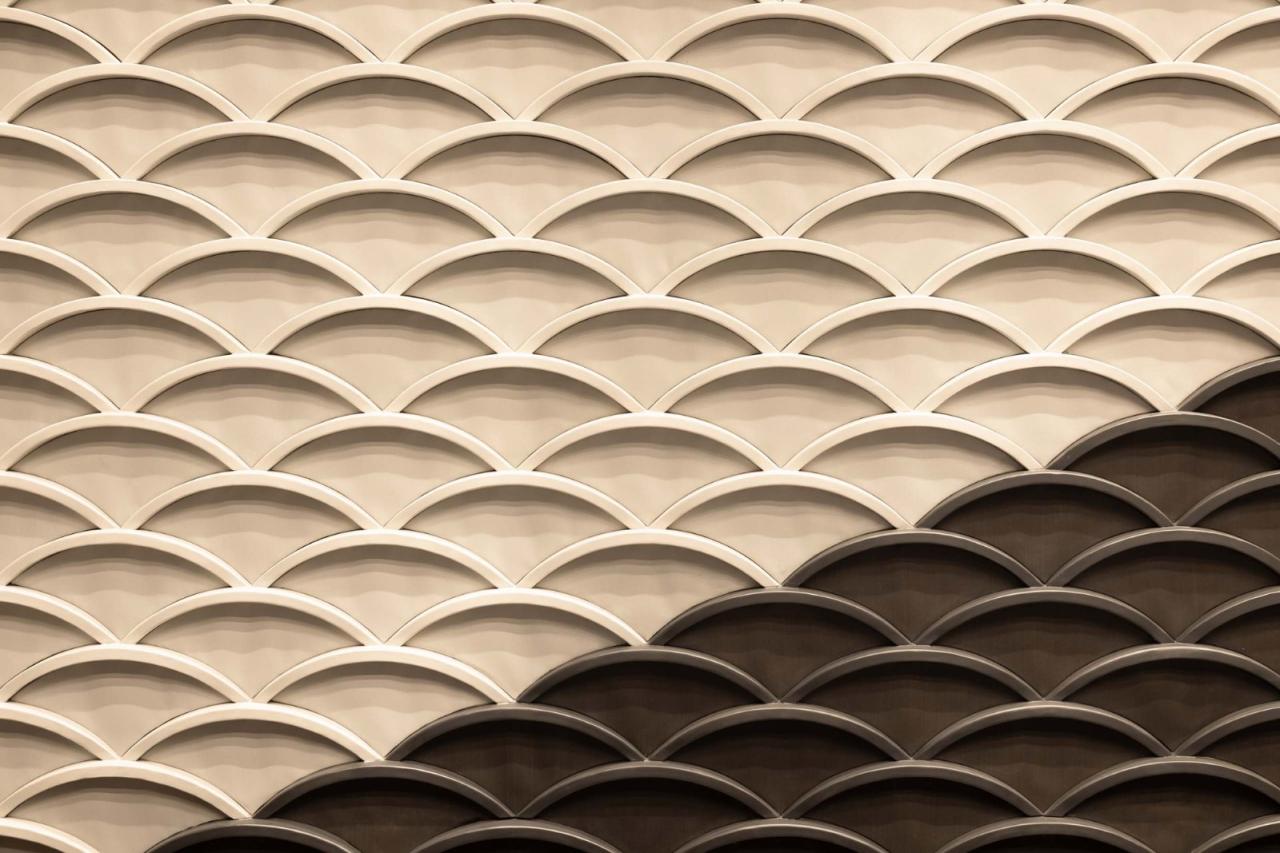 多功能厅:扬州之秋以银杏为美。多功能厅墙面深浅不一的吸音模块如同纷纷落下的银杏叶,勾勒出鳞次栉比的古城剪影。多功能厅空间为黑匣子模式,配备活动的看台,舞台和灯光设备。