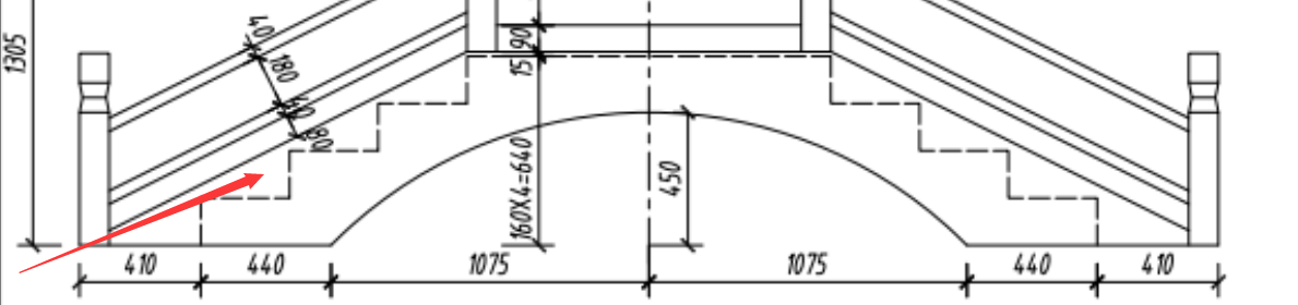 第一步,先用“拉伸”命令绘制这题拱桥的承重部分,在通过“镜像”命令绘制出另一半。
