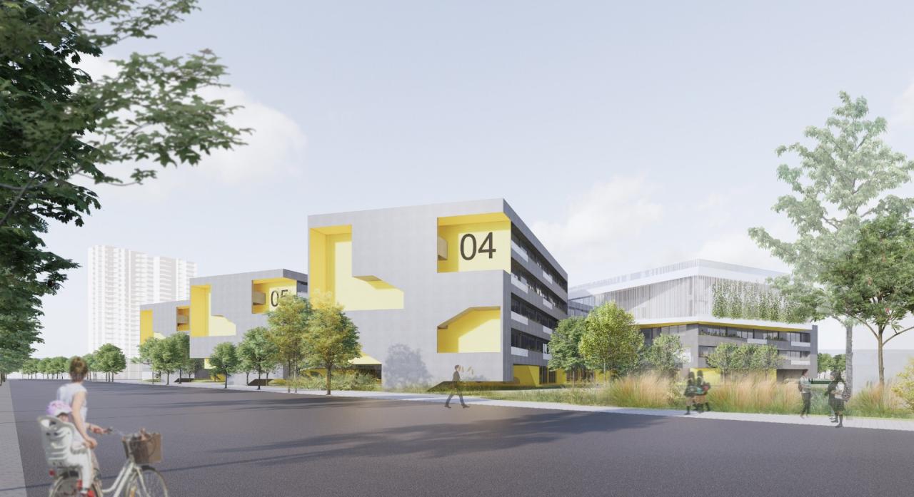 不但在城市功能的疏导和连接上进行考虑,为了能够使海洋路教育地块有着更良好的城市空间关系和整体城市形象,本案在规划设计和建筑形态语言上也与现有的小学和幼儿园做出呼应,达到和谐整体,共享共融的空间氛围。
