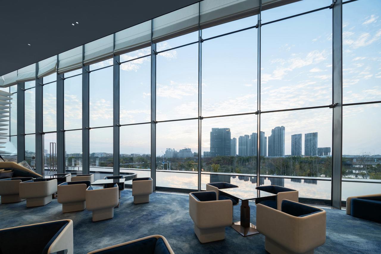 自室内向外看高大而宽敞的窗户极有利于游览者的观景体验,观景窗大玻璃面的设置在设计中一直占据重要地位,充分展现了城市江景之美。