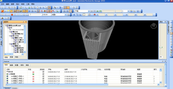 BIM的动态模拟技术改变了CAD技术只能描述产品几何尺寸特征的局限,变静态线条模型为动态组件模型,将模型按工程的各个阶段的进度进行分解,然后配合时间轴,则能模拟出整个施工过程的动态进度,如图1、2所示。