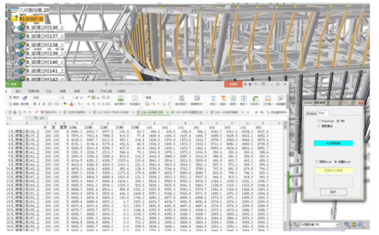 其次是对立柱进行分析,细分为几大类,利用DigitalProject软件按照造型分类对玻璃幕墙立柱进行参数化设计,将参数化后的立柱按照编号进行批量化生成BIM模型,加工图仅需对各种类型绘制标准图,然后利用BIM软件提取加工数据。横梁也采用同样方式。软件参数化设计如图17所示,提取加工数据如图17所示。骨架的加工主要是为了保证数据的准确性,以及对数据处理的高效性,避免繁琐重复的工作量,并能为材料加工厂提供便利,利用专业BIM软件能更便捷的解决这类问题,大大提高了工作效率。