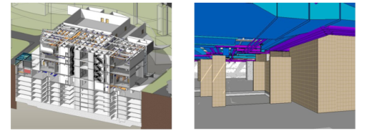 (3)BIM协同设计:在本工程中,利用了强大的BIM系列,完成了各专业在有效的时间里通过同一平台将信息和数据的汇总,这样在各专业之间实现了数据共享,信息顺畅,利用同一的平台实现了各专业之间的无缝链接,譬如,结构工程师用RevitStructure软件建完结构模型之后交给设备专业,设备工程师无需做任何转换,只需要在RevitMEP软件中直接打开,然后将结构模型链接到设备文件里,同样,建筑师也可以直接将设备、建筑模型相互链接,以达到相互之间的数据交流,方便快捷,改变了传统设计的从头到尾独立的设计,不仅任务量大,耗时长,如若建筑条件发生即时变化,而结构和设备专业没有即时更新,就会造成严重的错误,经常会出现电气线管破墙而出的情况,或设备线管要穿越结构主梁,对结构造成破坏,影响受力,而通过BIM协同设计之后,只要某一专业的设计师在模型中做出修改,软件系统会即时准确的更新,不会再出现各专业发生冲突的错误。