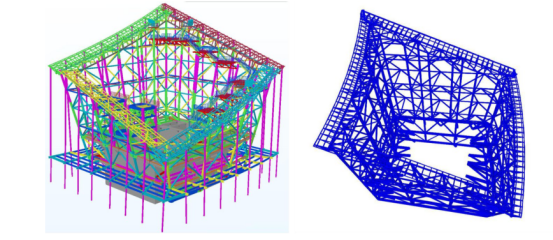 (3)设计难点:由于皇冠项目整体采用钢结构,且全部是复杂的空间关系,这在传统的二维工作模式下已经无法精确的表达复杂建筑的空间造型,同时为了能够直观的展现给业主和总包单位并方便交流与决策,因此我们采用了BIM技术。基于BIM设计平台,在结构方面通过使用多个计算软件对该项目在节点、整体抗震、风环境等方面分别作出节点分析、动力弹塑性、风洞模拟等智能计算分析,突显了运用BIM技术的成熟性以及多样性。见图5、6。