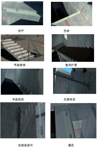 通过Navisworks制作该项目预制楼梯梯段的吊装过程模拟,指导现场工人吊装。如图9所示。