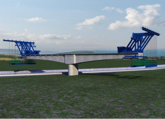 对整个跨越南水北调桥梁施工工序进行3D模拟,精确展示施工中每个细节,辅助项目施工,确保整个施工过程零污染,如图9所示。
