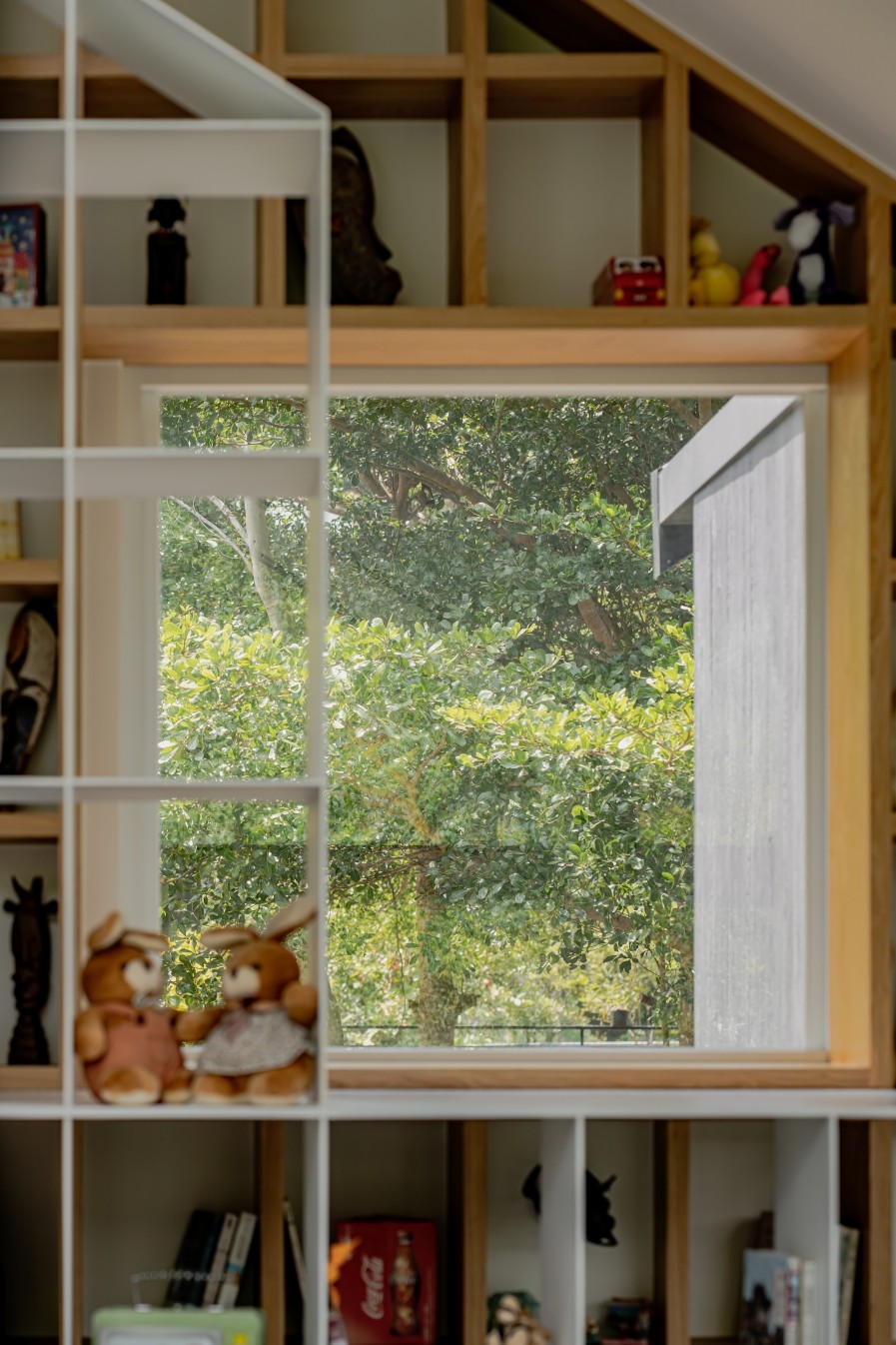 映入眼帘的开放大空间,由大大小小的山形屋顶延伸一进又一进的空间感,也界定了家的不同活动场域。