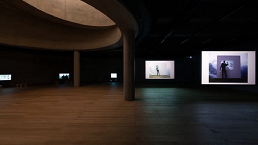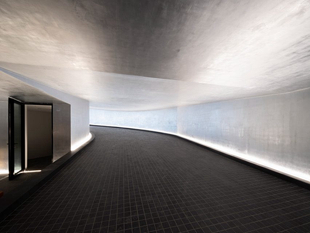 另一条路通向斜坡,斜坡向下延伸至地下停车场和洞穴状的展览空间。