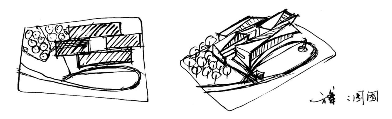 设计采用传统四汀宅沟形式,并以现代手法抽象转译,形成“得古意而写今心”的意境。