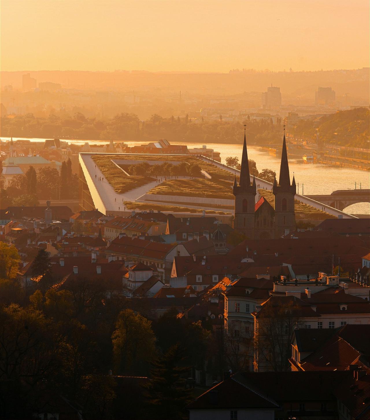 就个人而言,这一项目或许是我作为建筑师和丹麦人最重要的项目之一。丹麦建筑师 Jørn Utzon 是丹麦的民族英雄,他不仅在祖国完成了优秀的作品,也在地球另一端打造了举世瞩目的悉尼歌剧院。他向世界展示了现代建筑应当如何体现其姿态,并重振设计的传统,从而在国际风格中的‘现代盒子’设计浪潮下,仍旧可以在建筑设计中捕捉属于这片大陆的身份特征和属于世界的想象力。对于布拉格,我们试图想象一栋从与其同名的河流中汲取灵感的建筑,并将整座城市肌理中的三维复杂性凝聚在设计之中。——Bjarke Ingels,BIG创始人兼合伙人