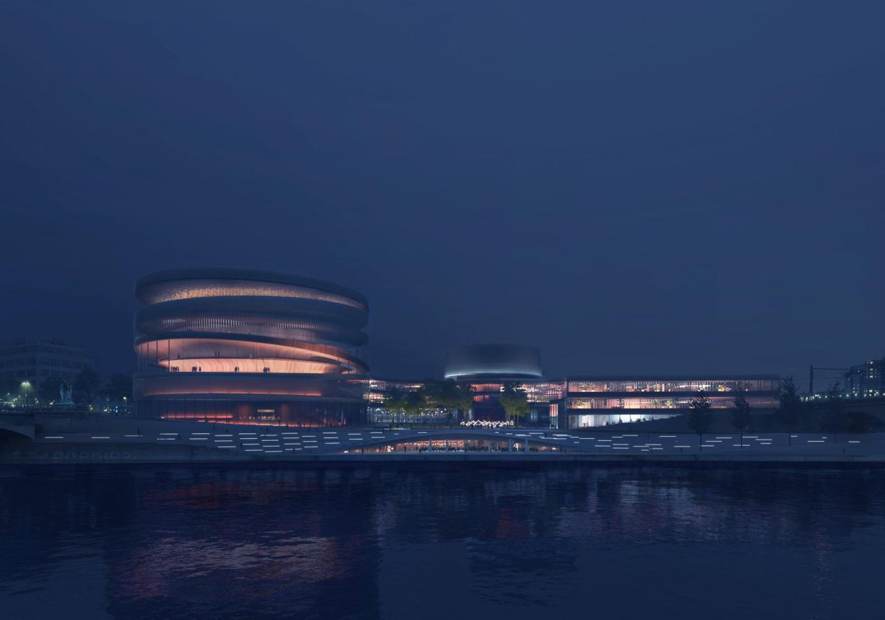 布拉格市政府于近期宣布伏尔塔瓦爱乐音乐厅(Vltava Philharmonic Hall)国际设计竞赛最终由丹麦工作室BIG拔得头筹。这一全新的音乐厅旨在成为布拉格城市的焦点,并巩固这座城市作为欧洲文化之都的声誉。新爱乐音乐厅将以其简洁的体块在人们心中建立具有高识别度的形象,并将以其建筑之躯完美地融入伏尔塔瓦河河岸复杂的地形之中。游客们将被邀请至此,漫步于一系列由斜坡屋顶蜿蜒连接的广场之中,并从河岸走到屋顶,将布拉格历史悠久的市中心美景收入眼底。在本次竞赛中,西班牙建筑事务所Barozzi Veiga与当地工作室Atelier M1合作取得了第二名,Bevk Perović Arhitekti和Petr Hájek Architekti分别获得了第三及第四名,Snøhetta的设计提案则为第五名。