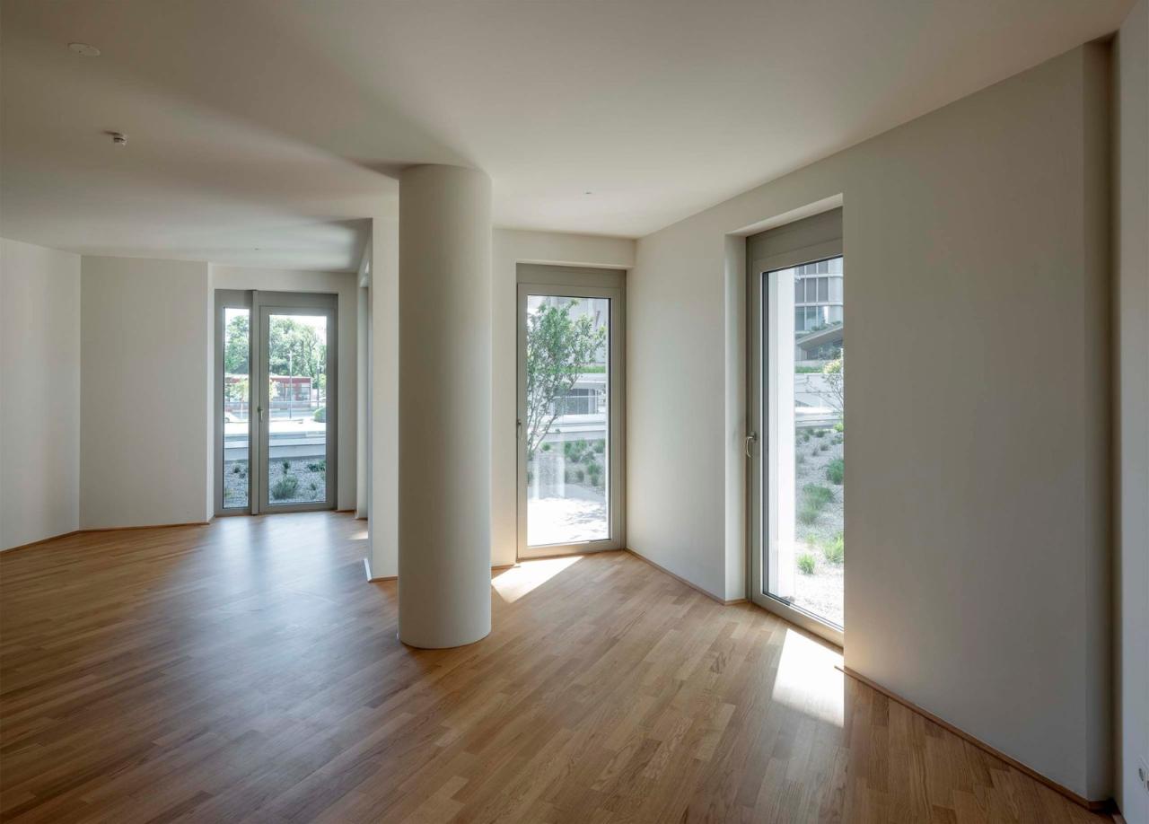 六种不同类型的公寓都配有天花板冷却系统及地暖系统,所有公寓单元都拥有独立的阳台或凉廊,从而为每一位住户都打造了高质量的户外生活区域,让他们可以自如地将维也纳迷人的景色尽收眼底。