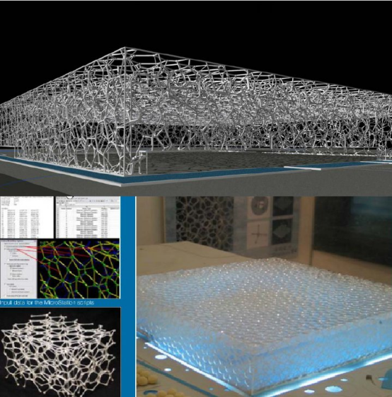 BIM三维可视技术,将原有的对建筑各角度下的二维平面线条的表达形式,改变为三维立体实物模型,仅以一个三维模型就可以清楚直观的表现设计者最原本的建筑思路。这种三维可视技术得到的三维模型,可以将建筑结构的功能特性和物理构架采用更为方便实读的形式表现,使施工者可以清楚全面的把握项目及单个结构信息。例如,基于BIM技术建立的水立方模型,如图1所示。而这种实物模拟的方法也与传统的二维方法不同:BIM模型技术是在提供全面的建筑结构信息数据的基础上而自动生成的,不同构件间的联系与关联性强,而且易于通过参数化的方法改变建筑结构模型。另外,BIM技术不仅局限于设计施工阶段对设计效果图的控制,而是在整个项目的全生命周期阶段均能对大小决策进行改变,从而对整体结构进行很好的可视化操作。