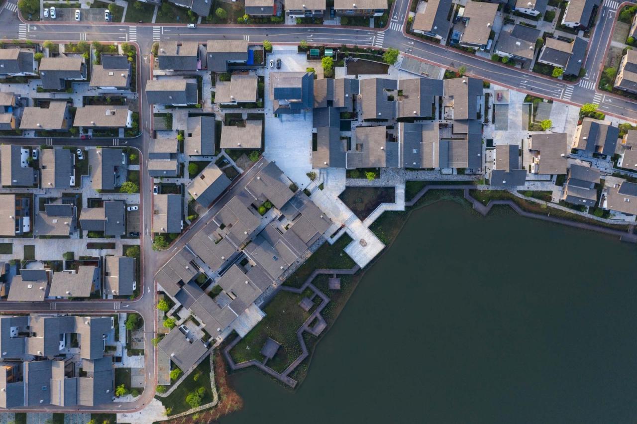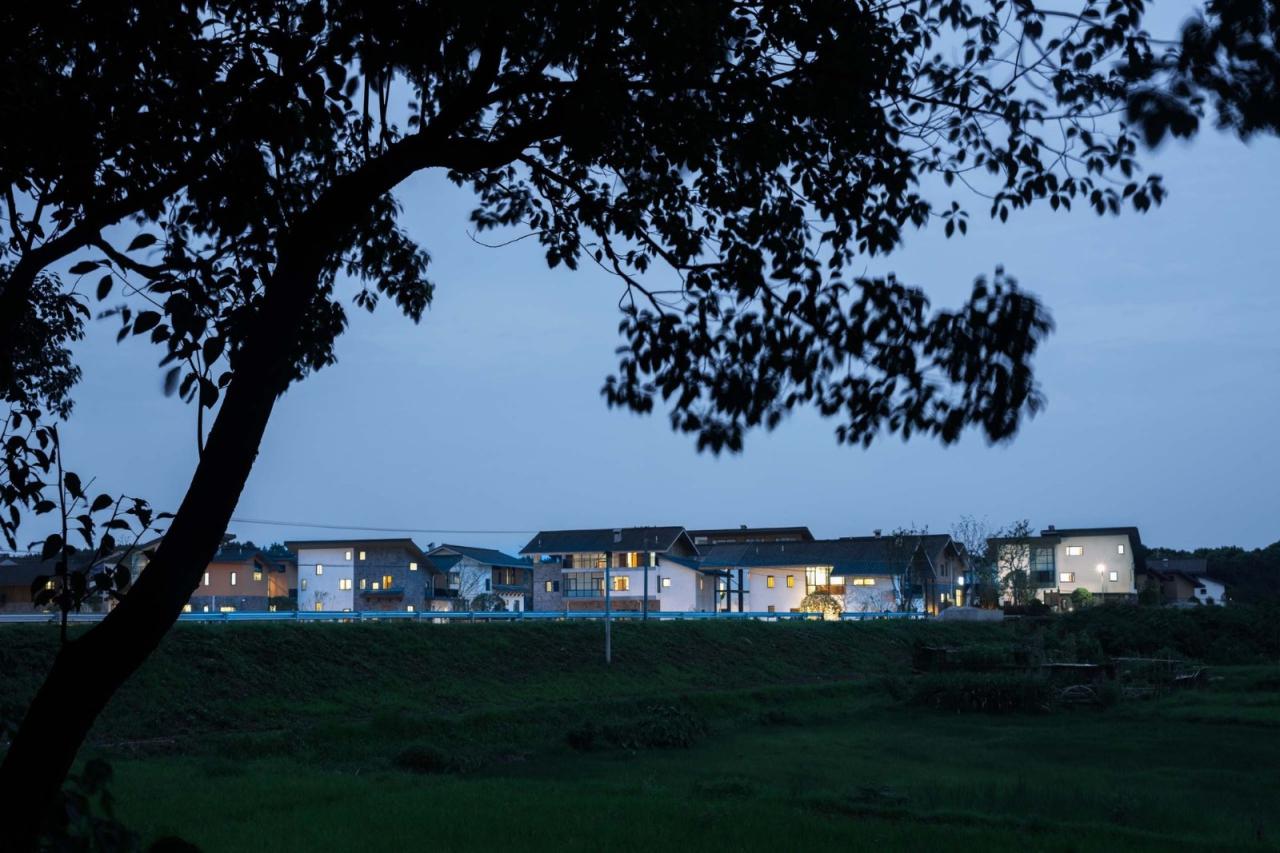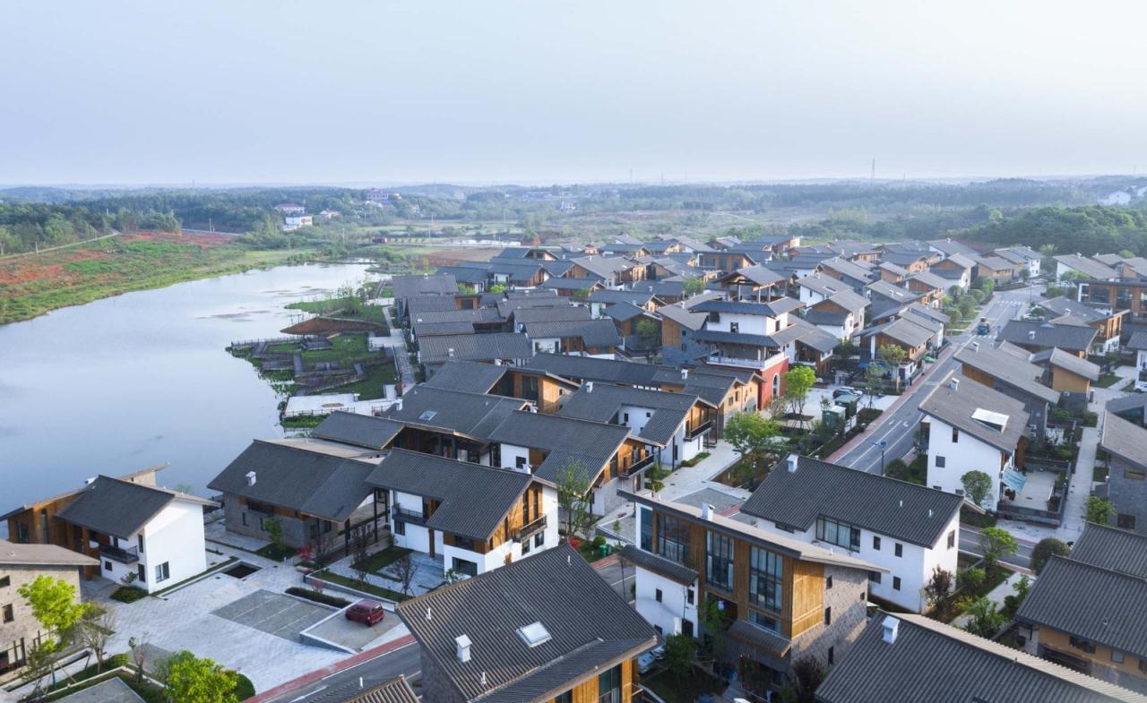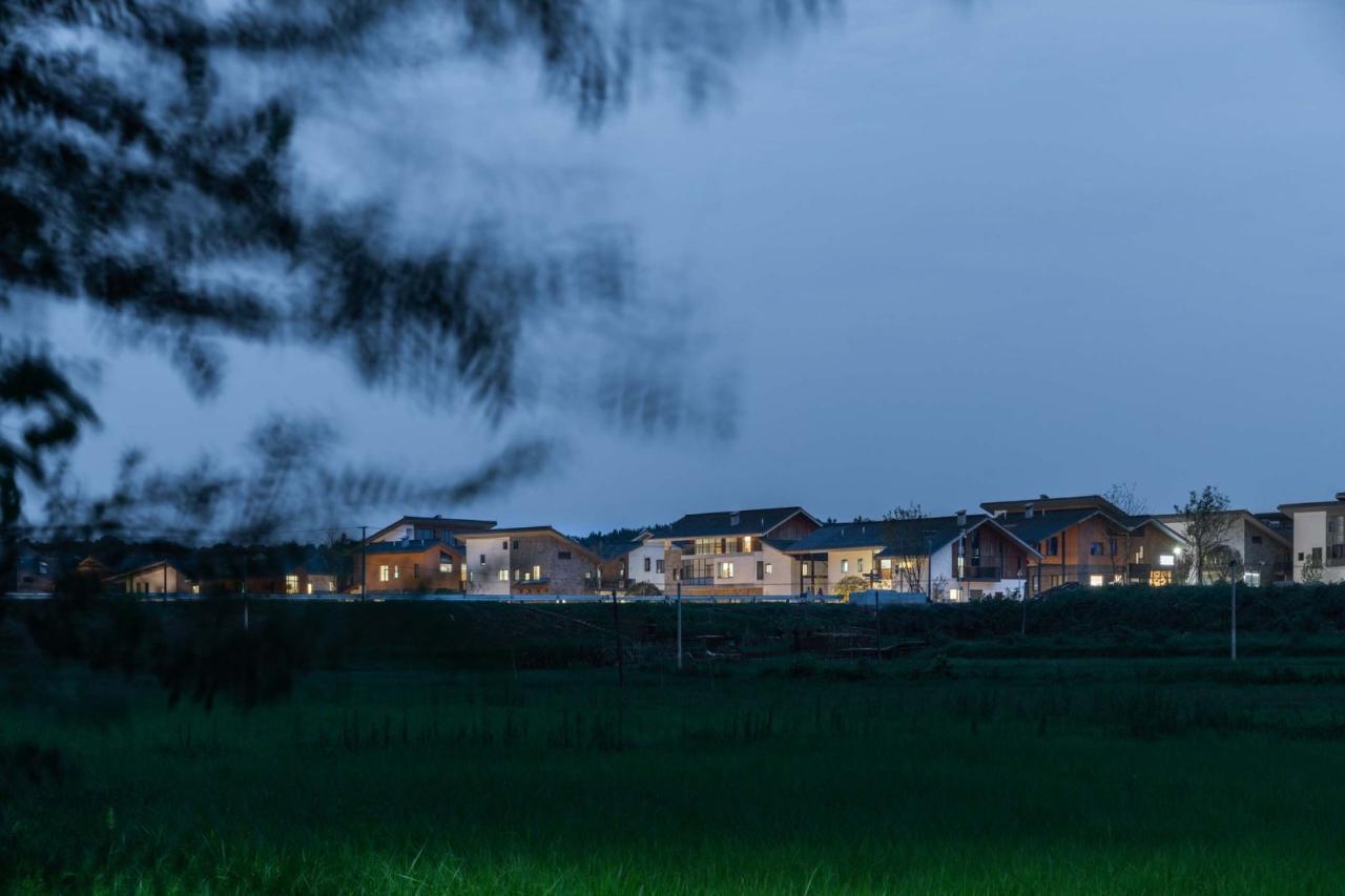 这是一个乡村回迁安置房工程,涉及当地6个村,近400户农村家庭的拆迁与安置。项目于2021年完成第一期建设,随着村民陆续迁入,并在自家开出了超市、餐馆、各类店铺等五花八门的微型乡村商业,这里已经初步形成了社区氛围。