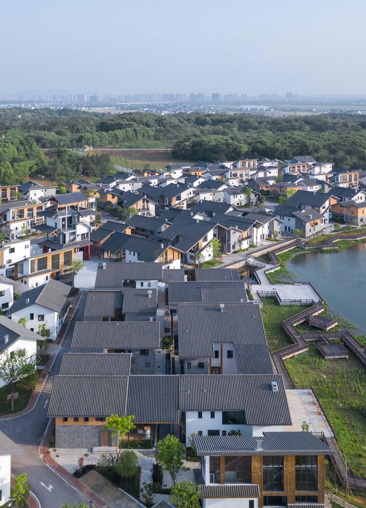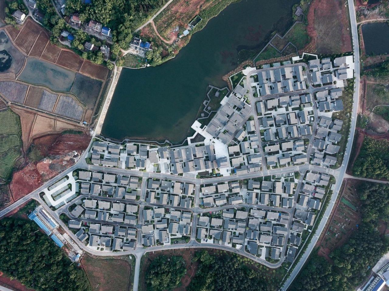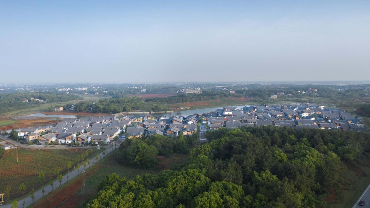 共同生活的今昔汨罗当地的大部分村落现状可以用八个字形容:小簇散落,清冷无序。坡地林间的几栋房子组成微型聚落,布局松散,建筑也充满了低质量的拼凑感。我们尊重这种强调隐私与独立的乡村个体生活,但也想在新的聚落中尝试重塑有规模、有社交互动的群体生活模式,让乡村的烟火气得以回归。之所以是“重塑”,因为这种生活模式在湘北地区早已形成。它实现于一种已被业界前辈定义过的建筑类型:湘北大屋。