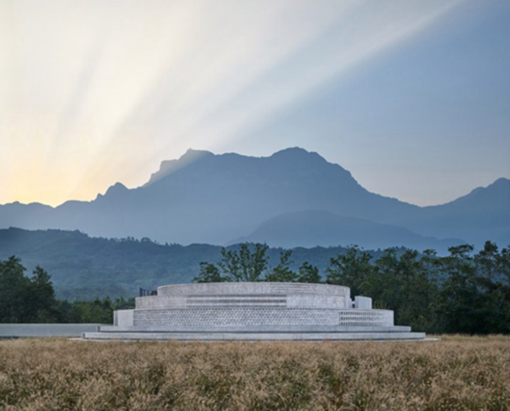 根据如恩工作室的说法,这些设计符合中国哲学,圆形和方形分别代表天地。圆形体验建筑部分被淹没在地下,包括五个地下品尝室,围绕着一个带有层叠水景的圆顶庭院。在地面上,这座建筑像是一座由三个同心砖环组成的雕塑,它充当了一个平台,让游客可以欣赏现场的全景。