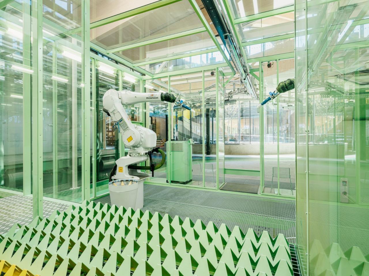 该建筑的能源消耗比类似的传统工厂低 60%,同时排放的温室气体比同类工厂低 55%。在绿色屋顶上,有大约 900 块太阳能板,每年将产生大约 25 万千瓦时的可再生能源。此外,该工厂将对生产中使用的 90-95%的水进行再利用。The Plus 将实现”巴黎保证“(Paris Proof)关于能源效率和现场能源生产的目标。