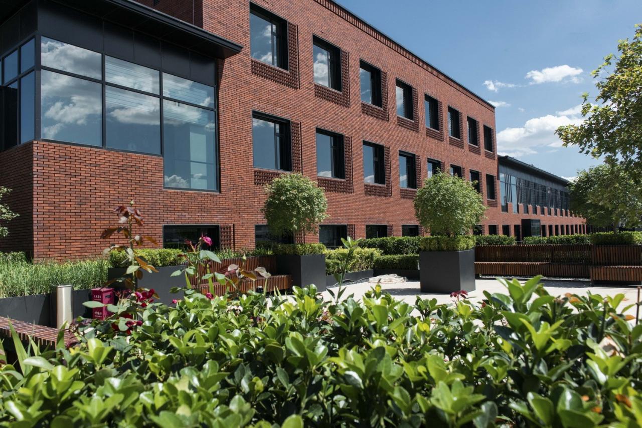 陶土红砖幕墙既是对老建筑的致敬,也是对于新技术的一次新的探索与研究。经过多次1:1样板推敲,最终采用干挂陶土砖开放式幕墙体系,以避免勾缝砂浆返碱污染墙面。陶土砖由人工烧制,每一块砖的颜色和肌理都因人工介入变得与众不同。5种颜色,随机交替干挂,以表达岁月侵蚀的真实与厚重。65种模数,实现了多种砌筑图案的构建。从生产、运输、排版、干挂,陶砖幕墙经过了数十道人工工序,这是对传统技艺的尊重,也是工匠精神的完美诠释。