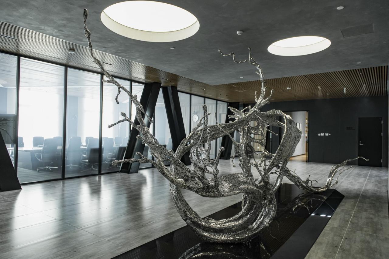 城市更新浪潮下的建筑改造,不仅仅是建筑的改造、空间功能的更新,还有更为重要的一点就是要体现当代的人文气息。建筑不仅是实现功能的场所,也是展现艺术的载体。为此,我们也把此次改造的题目定为了“UCD美术馆”。建筑内部的多个空间在设计时就做了留白处理,后期根据空间需求置入艺术作品,使艺术品与空间契合。在建筑空间中穿行,就仿佛置身于一座美术馆。