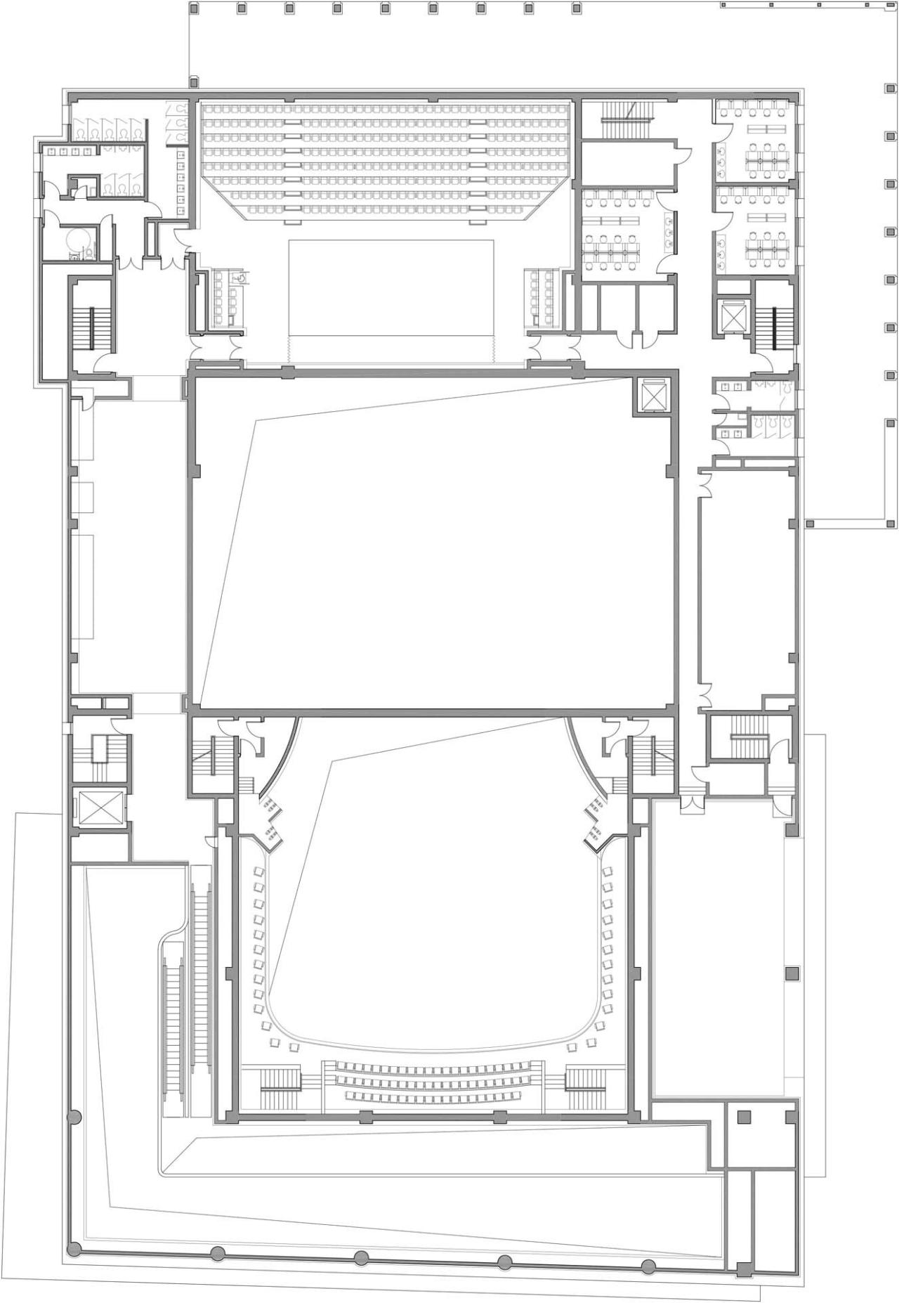 北京国际戏剧中心是北京人民艺术剧院扩建工程,位于东城区王府井大街北京人民艺术剧院内,现状首都剧场东侧,是一座集话剧演出、艺术创作、排练、展示、机房、停车等于一体的综合观演建筑。