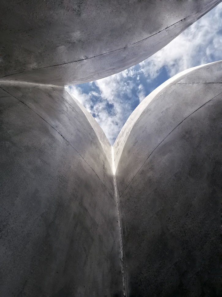 转过建筑的一角,是建筑和山体切割出的远处峡谷的风景。路的尽头是心跳博物馆的入口。