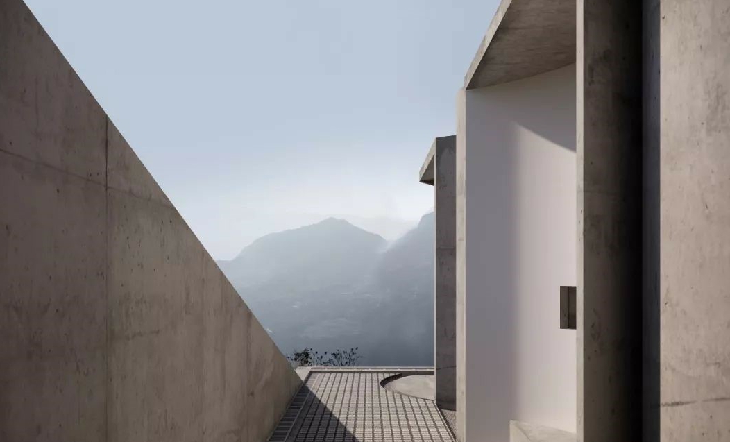 在建筑的入口区,是一块厚重的混凝土石门,以回应艺术家对于生命和死亡的创作体验。