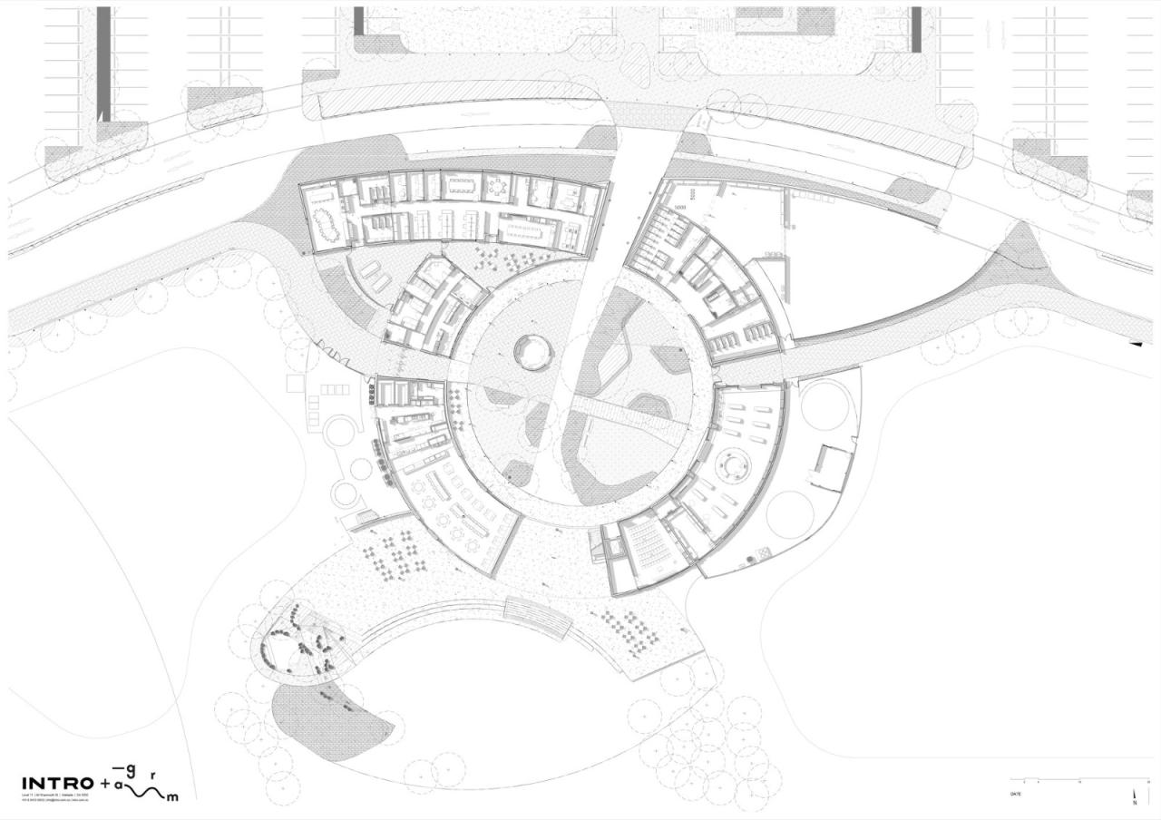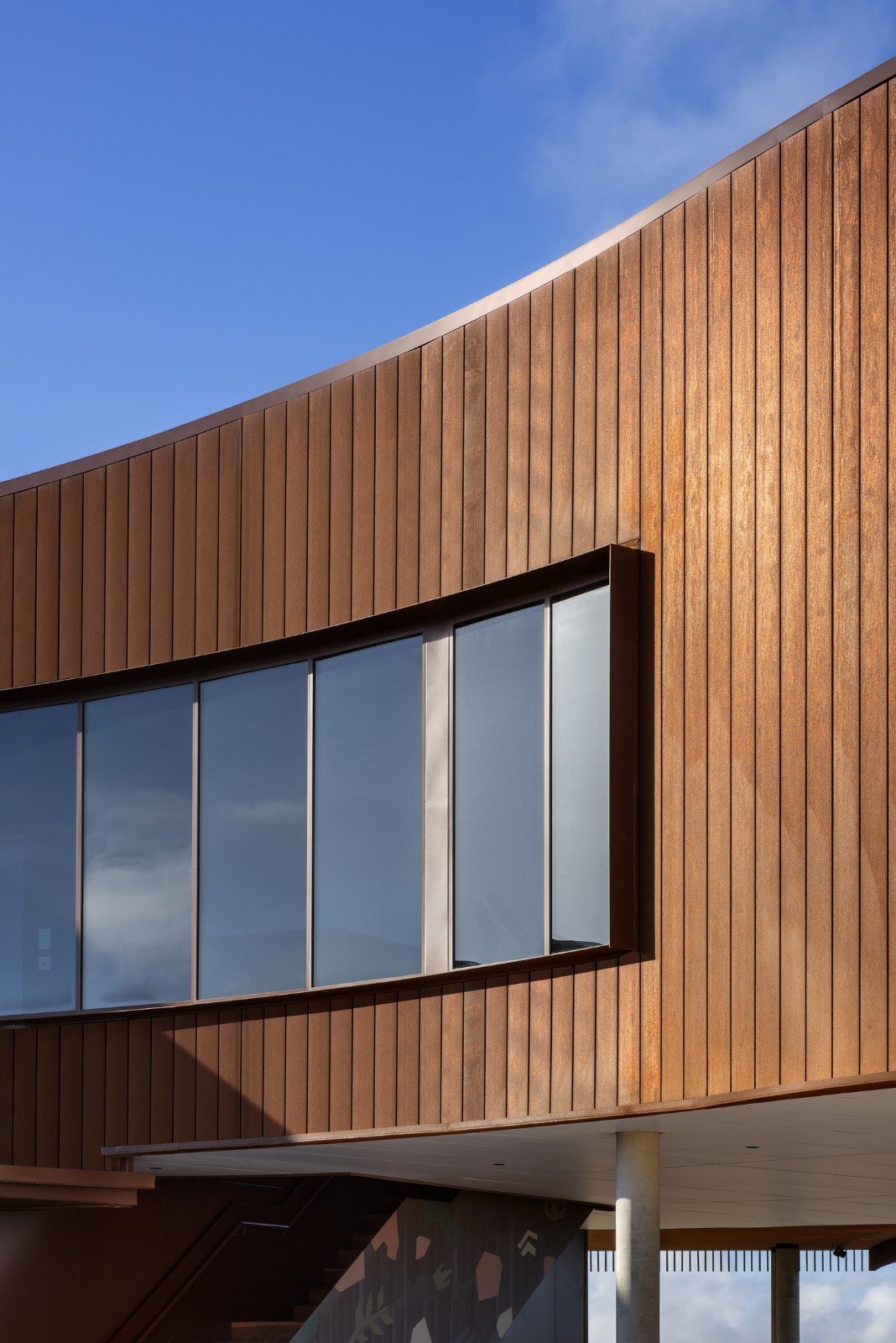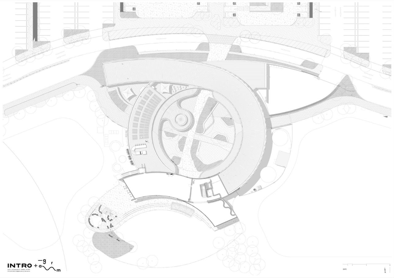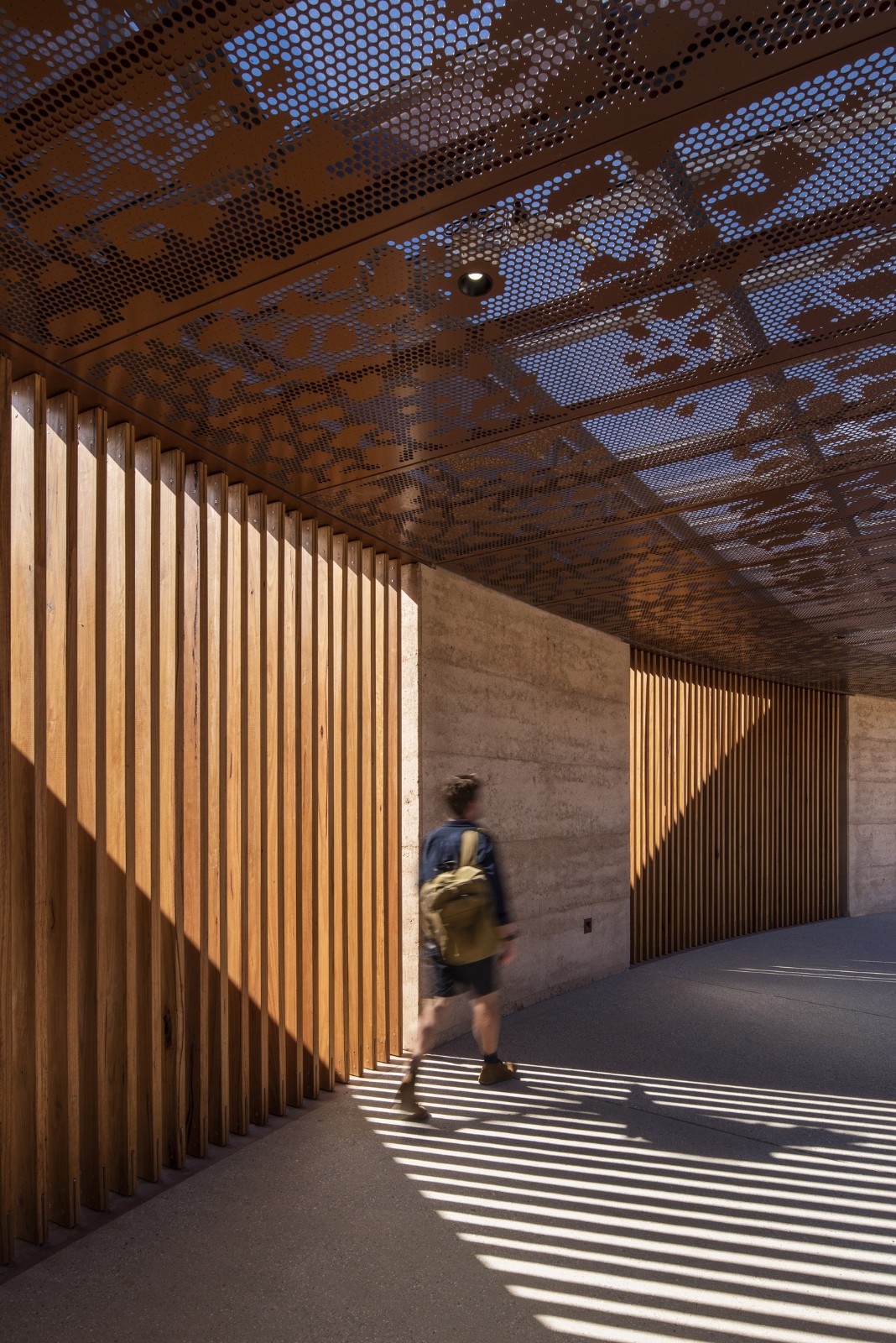 项目形态分为两个差异化的元素。弯曲丝带的汇合代表了土著和非洲文化的交织,体现了与土地、植物和动物的内在联系。这一标志性但含蓄的形式表达可邀请来访者参与其中,进行阐释与讨论。