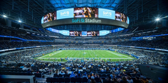 这座建于洛杉矶英格伍德地区(Inglewood)的体育场于2月13日周日举办洛杉矶公羊队与辛辛那提孟加拉队Cincinnati Bengals)的超级碗LVI比赛。