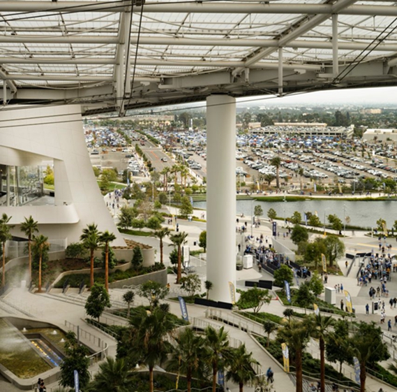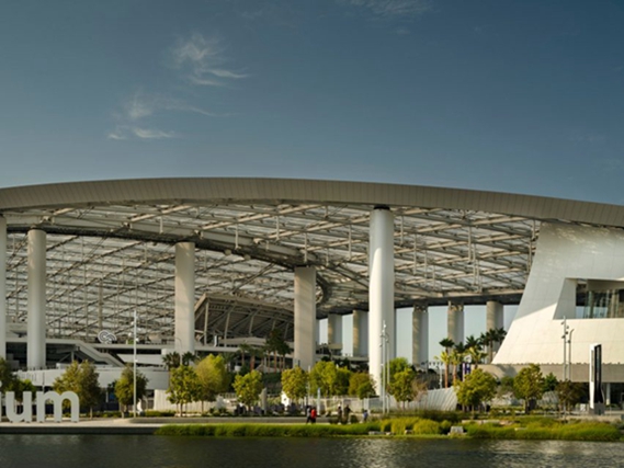 HKS建筑工作室设计了洛杉矶的索菲体育场(SoFi Stadium),该体育场将举办今年的超级碗赛事(Super Bowl),并作为美国橄榄球队洛杉矶充电器队(LA Chargers)和洛杉矶公羊队(LA Rams)的主场。