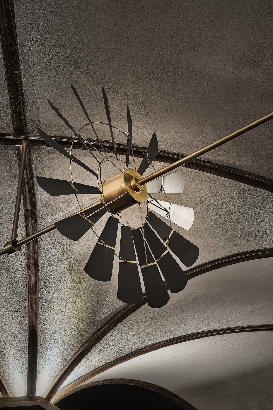 酒吧空间中央以手摇式转动的排状扇形金属装置为设计核心,将质感纤细而华丽的装饰性建筑元素融入维多利亚时期古旧酒吧之中。成为设计和视觉核心的同时,也构建了一处极具标识性的场景,让空间成为品牌传播的亮点,为厅堂空间带来趣味性和话题性。