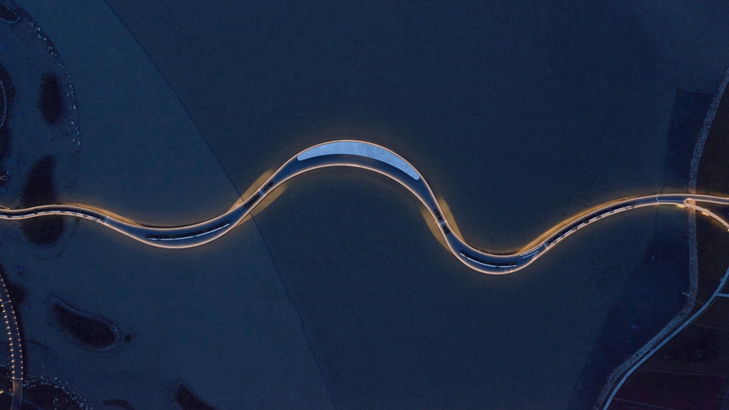 总部位于中国和澳大利亚的BAU工作室,将这座586米长的梁桥设计为一座“混合建筑”,将建筑、基础设施和景观与现场现有的道路和自然面貌融为一体。自2020年开通以来,这座横跨元荡湖南端的东西向大桥为上海市和江苏省之间提供了一条新的连接线。